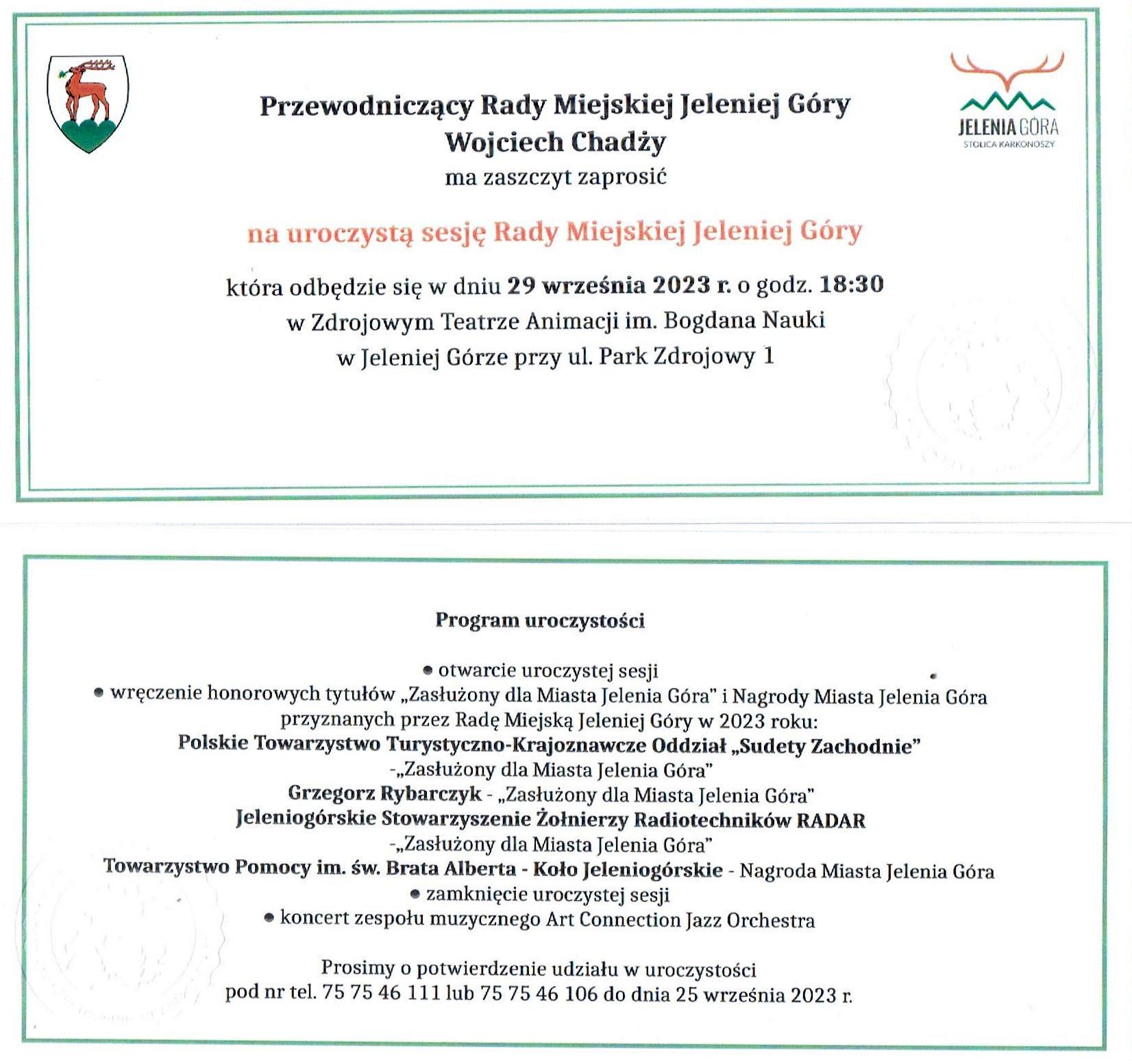 Uroczystość wręczenia wyróżnienia odbędzie się 29 września 2023 r. w Zdrojowym Teatrze Animacji w Jeleniej Górze - Cieplicach podczas uroczystej sesji Rady Miejskiej.