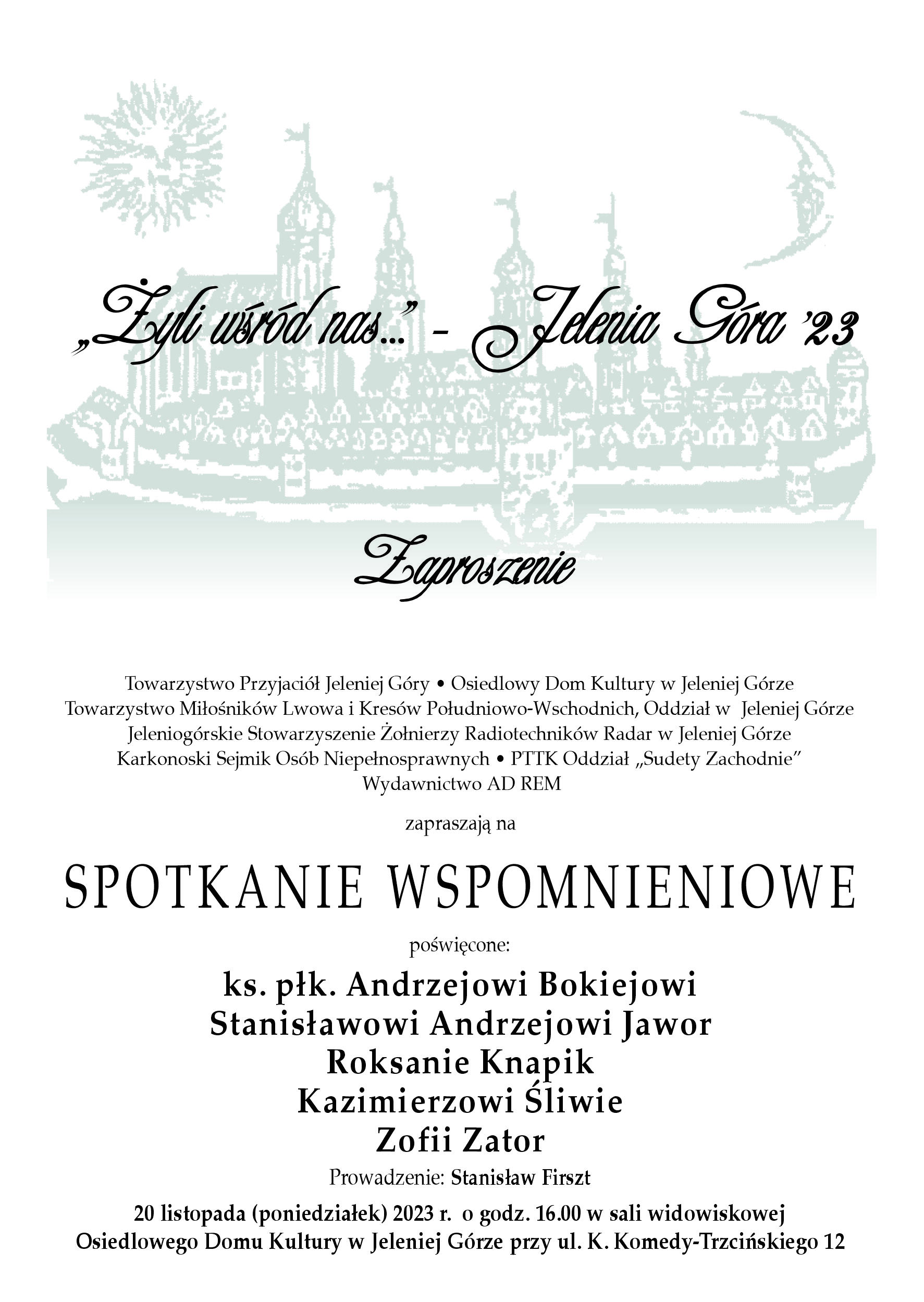 Spotkania poświęcone są zmarłym osobom zasłużonym dla jeleniogórskiej społeczności.