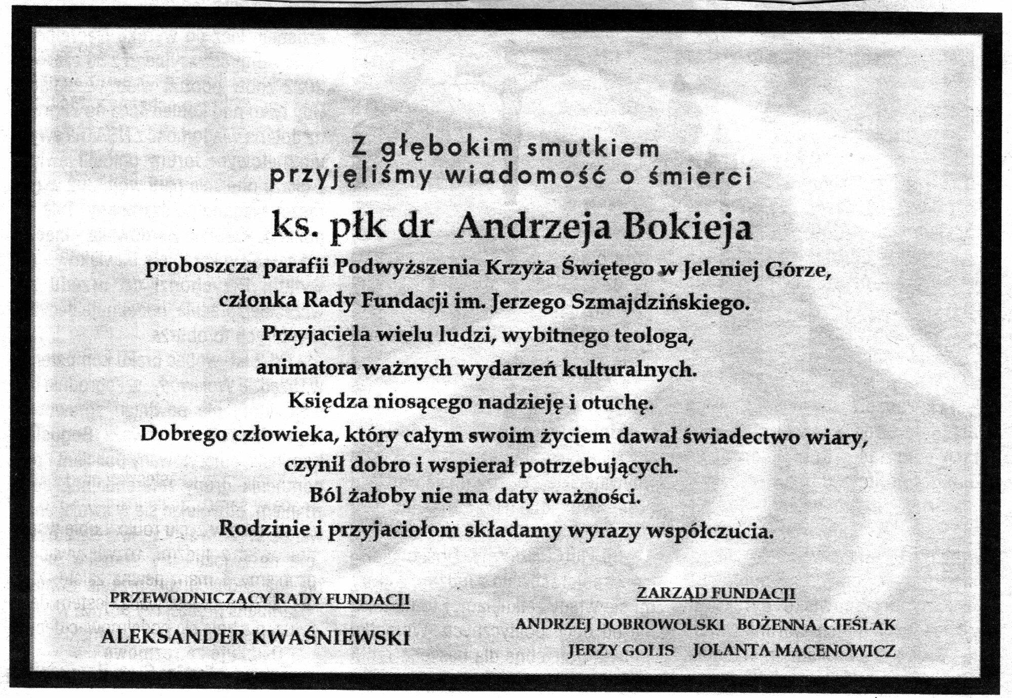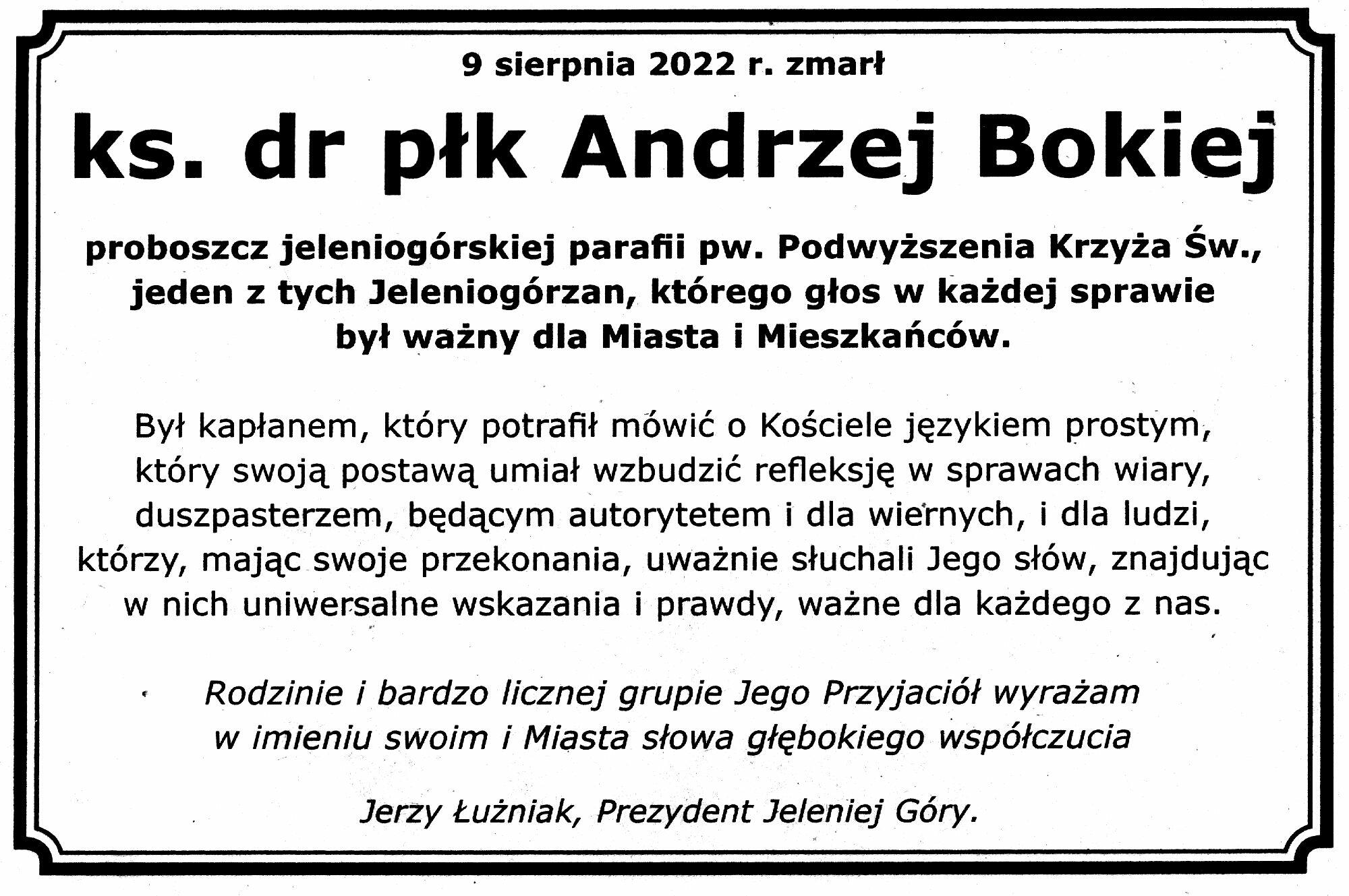 ks. prałata płk. dr. Andrzeja Bokieja,