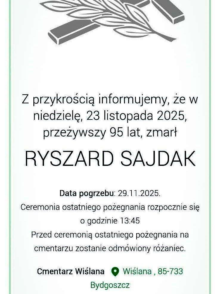 Pogrzeb odbędzie się w sobotę 29 listopada 2025 r. na cmentarzu w Bydgoszczy.