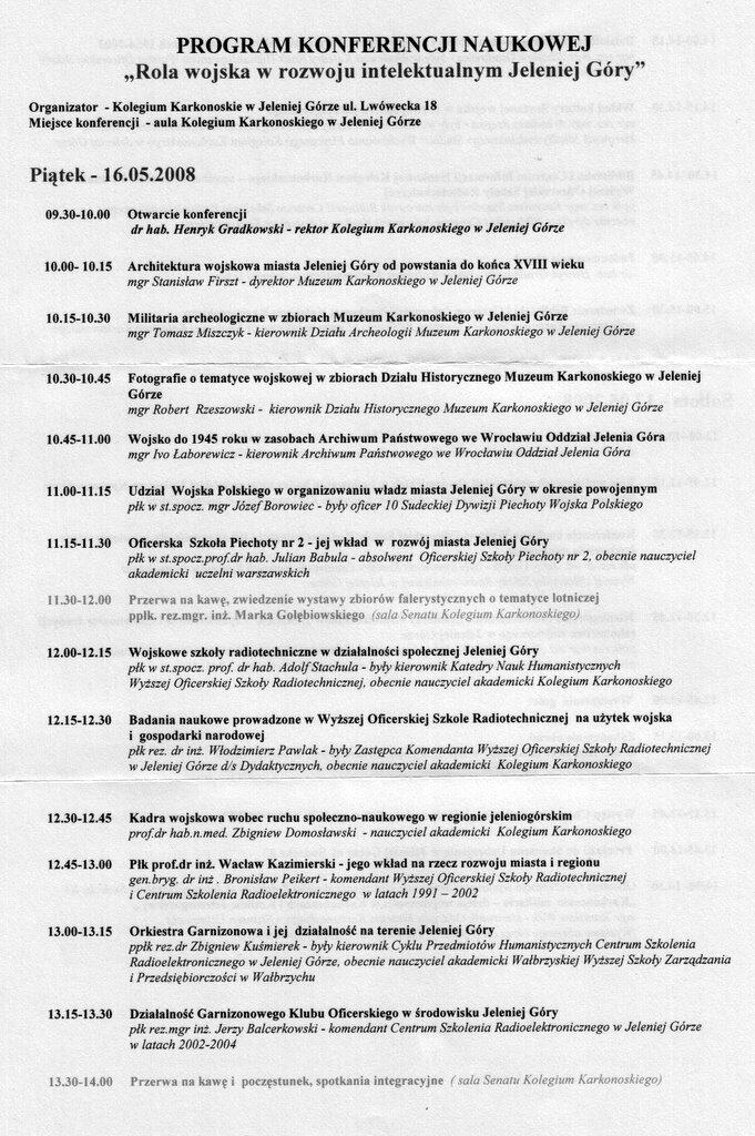 Poprzedziła je Konferencja Naukowa nt: „Rola wojska w rozwoju intelektualnym Jeleniej Góry". Podczas konferencji, otwartej przez rektora Państwowej Wyższej Szkoły Zawodowej „Kolegium Karkonoskie" prof. Henryka Gradkowskiego wygłoszonych zostało 17 referatów.