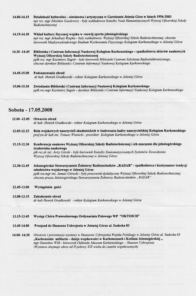 Natomiast w sobotę, 17 maja, po wystąpieniach okolicznościowych wyświetlony został film dokumentalny o historii szkolnictwa wojskowego w Jeleniej Górze.