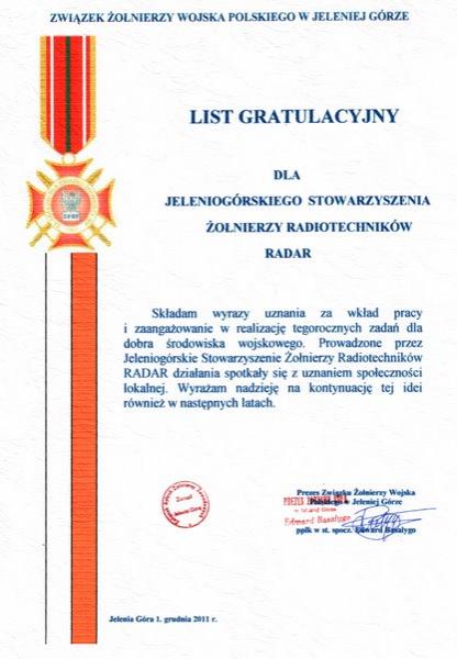 Nasze stowarzyszenie wyróżnione zostało "Listem gratulacyjnym".