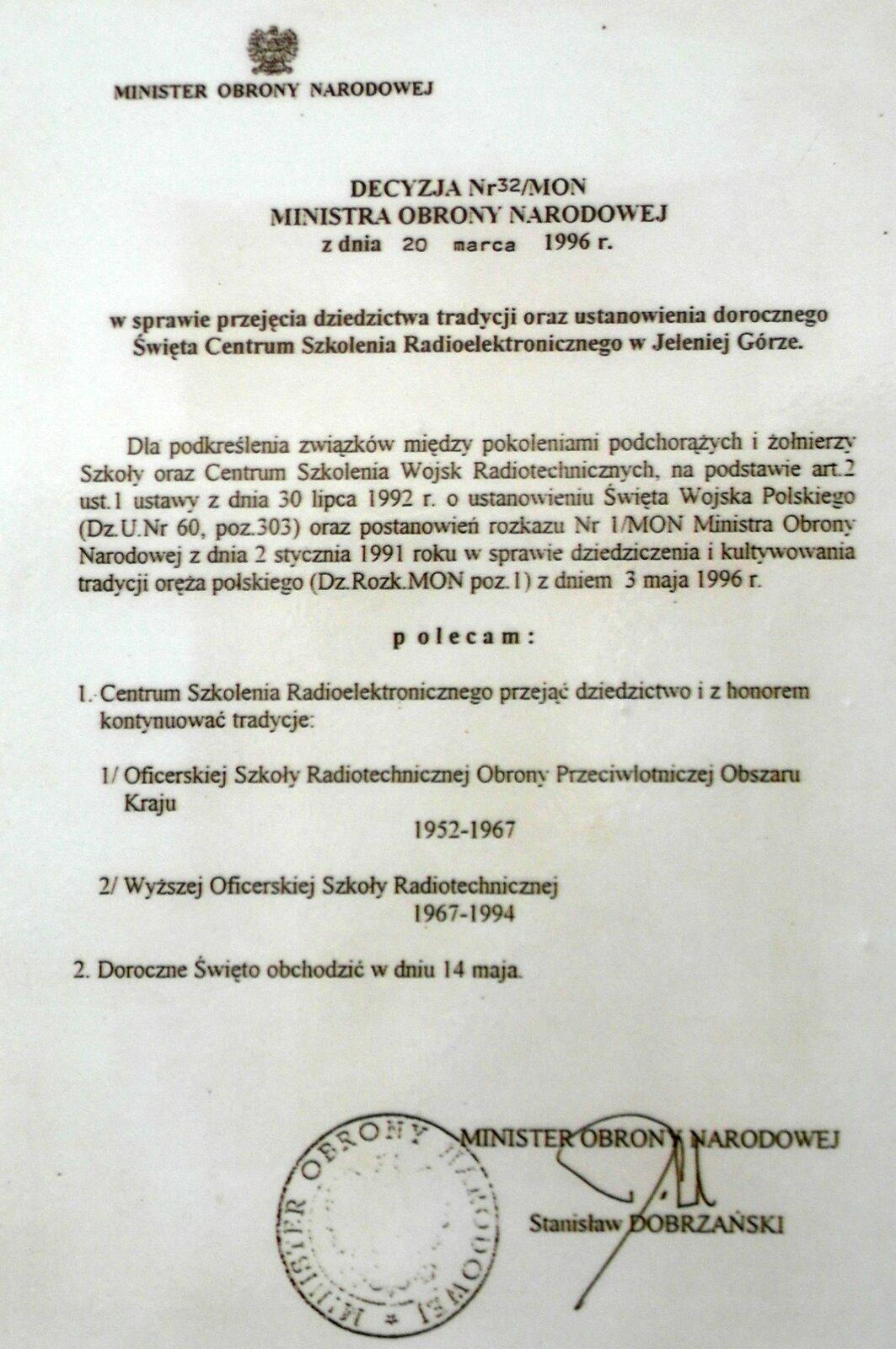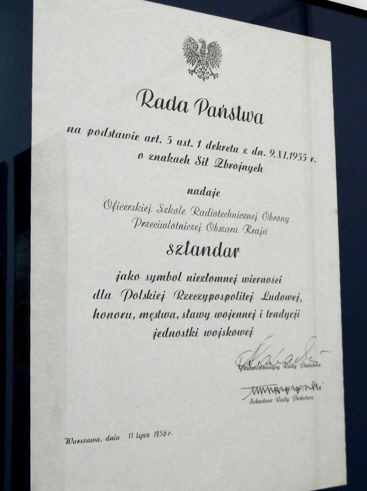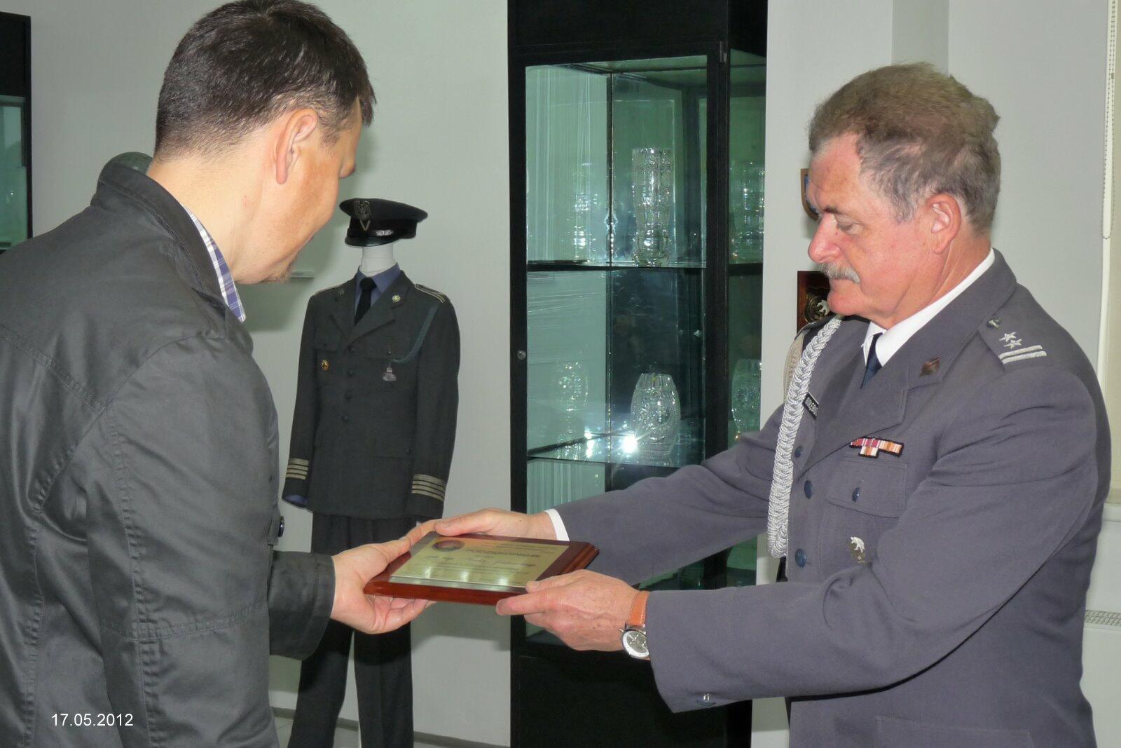 Podziękowania za prace w przygotowaniu wystawy "60 lat szkolnictwa radiotechnicznego 1952-2012" otrzymali od Kierownika Skansenu Uzbrojenia WP w Jeleniej Górze mgr. Stanisława Wilka: