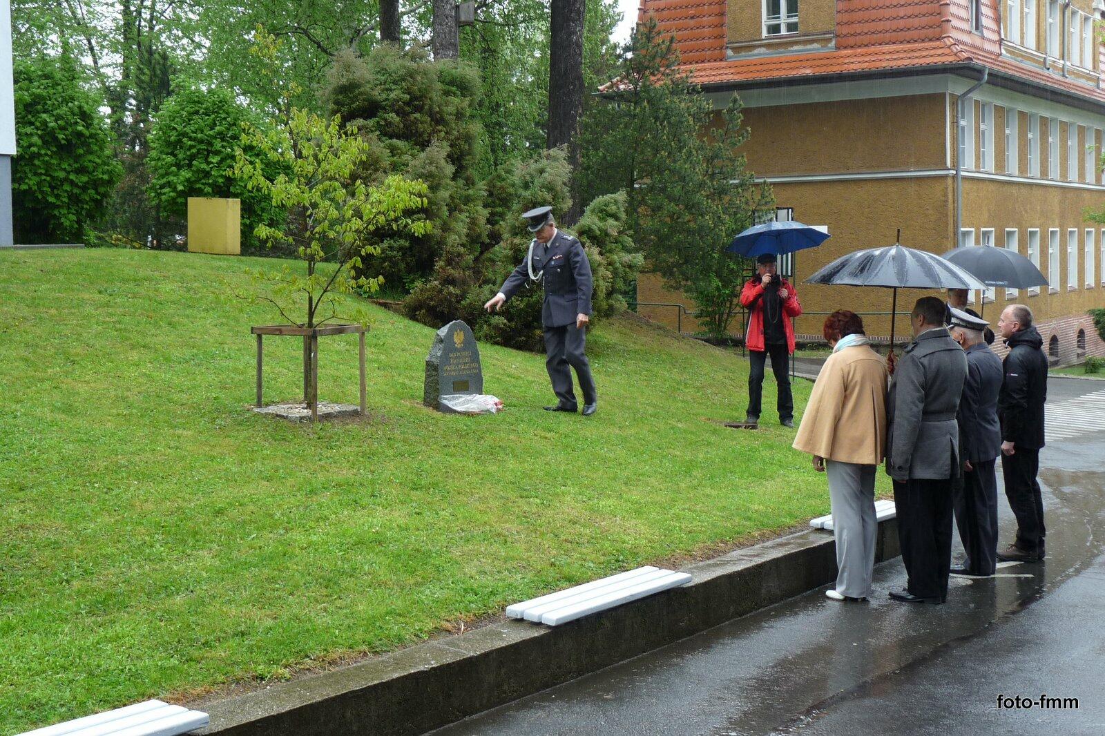 Kolejnym punktem obchodów było złożenie kwiatów pod "Dębem Pamięci Żołnierzy Wojska Polskiego Garnizonu Jelenia Góra".