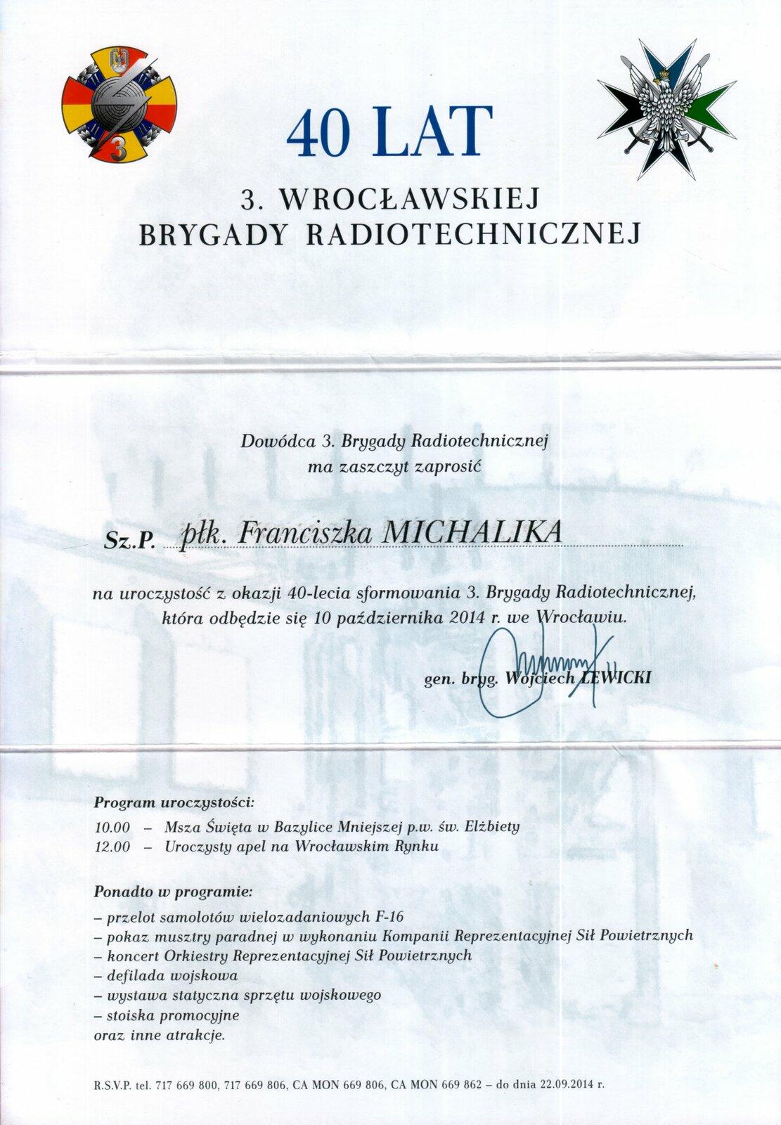 10 października 2014 r. we Wrocławiu uroczyście obchodzono 40 rocznicę sformowania 3 Wrocławskiej Brygady Radiotechnicznej.