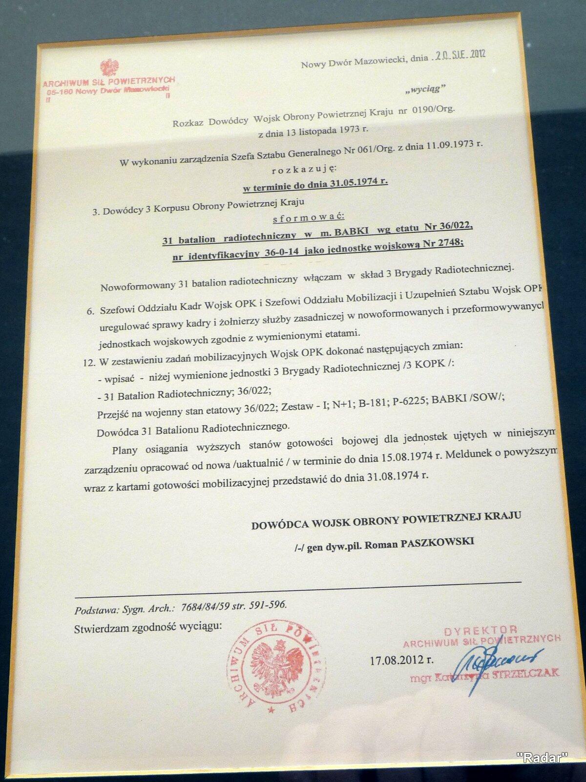 11 maja 2015 r. członkowie "Radaru" wraz z rodzinami odwiedzili 31 batalion radiotechniczny oraz dowództwo 3. Wrocławskiej Brygady Radiotechnicznej.