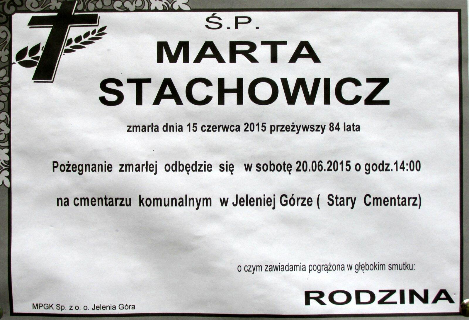15 czerwca 2015 r. zmarła w Jeleniej Górze Marta Stachowicz.