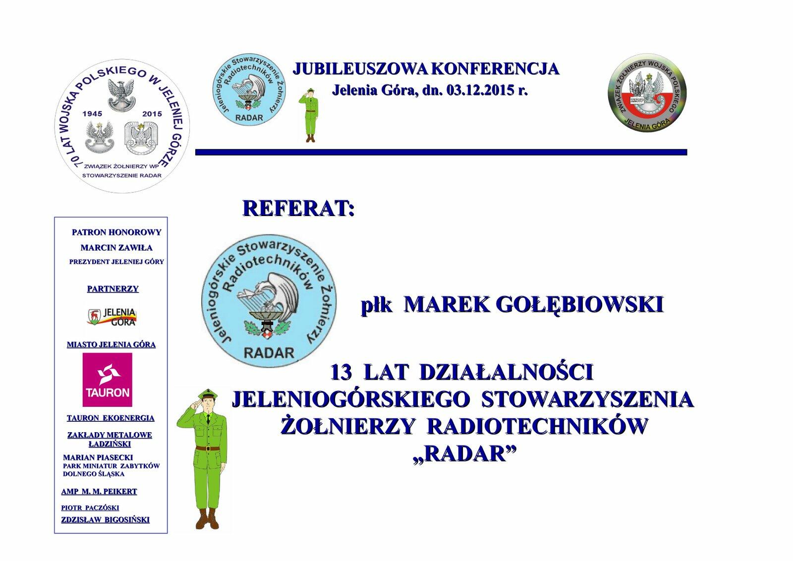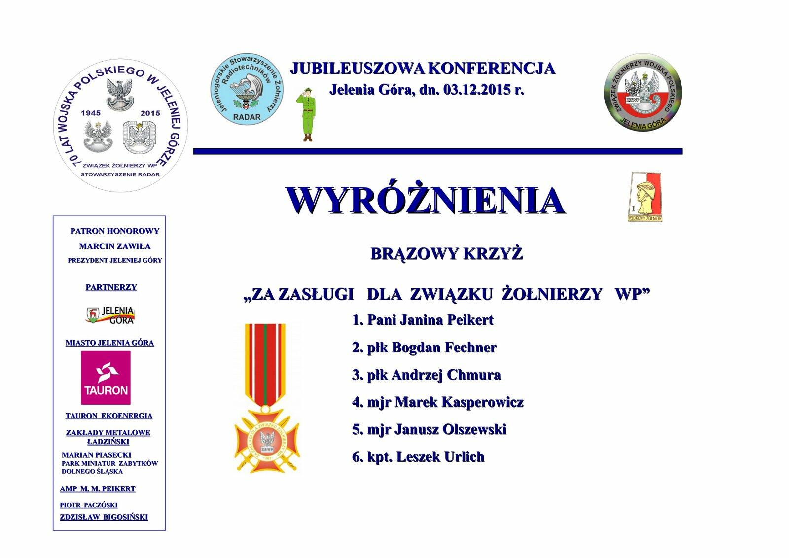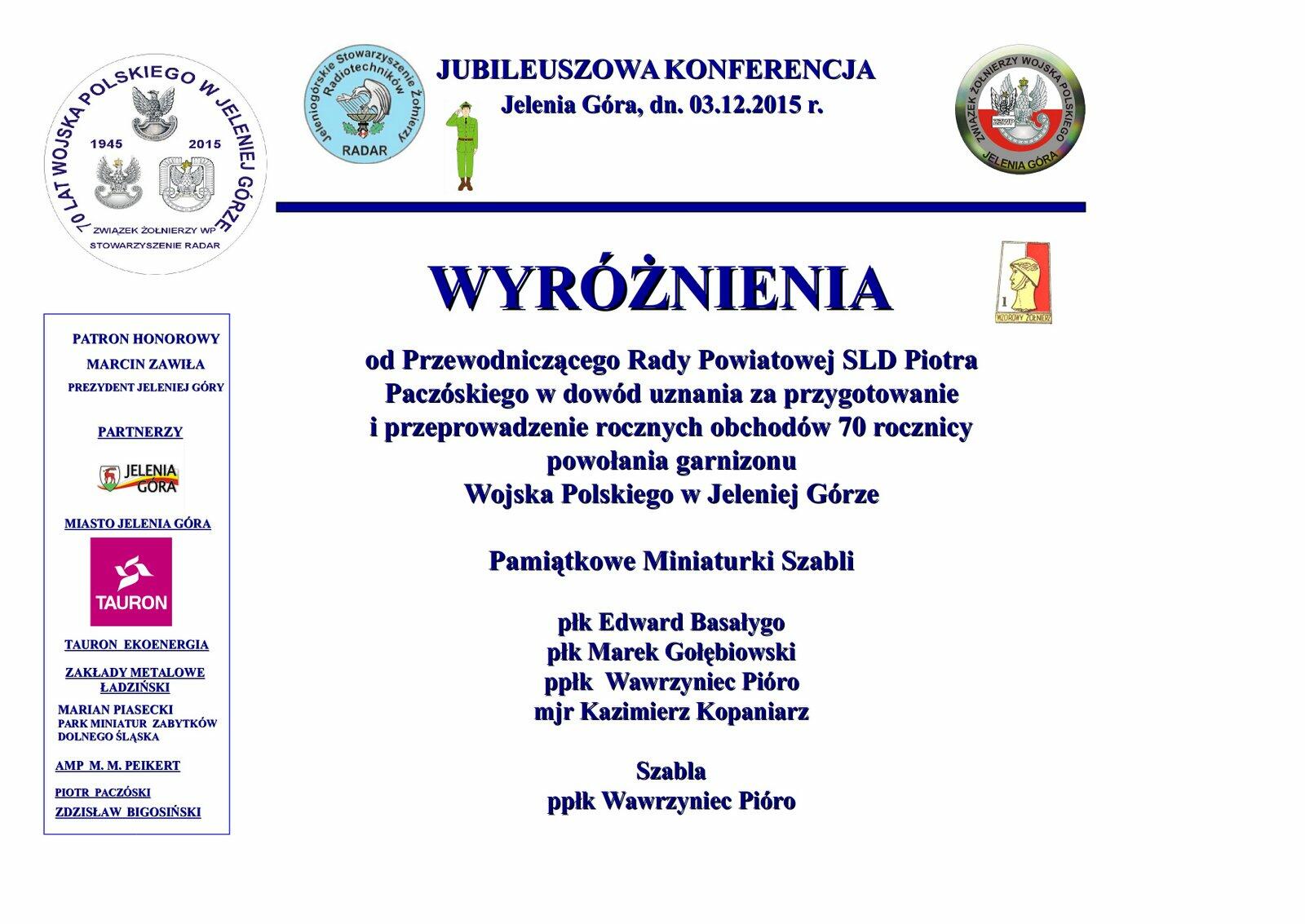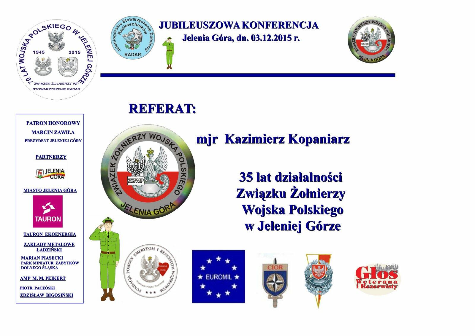 3 grudnia 2015 r. odbyła się Jubileuszowa Konferencja nt.: "70 lat Wojska Polskiego w Jeleniej Górze - 1945-2015".
