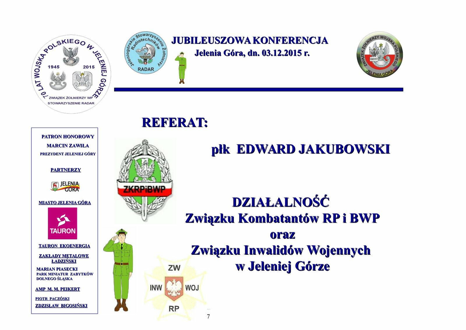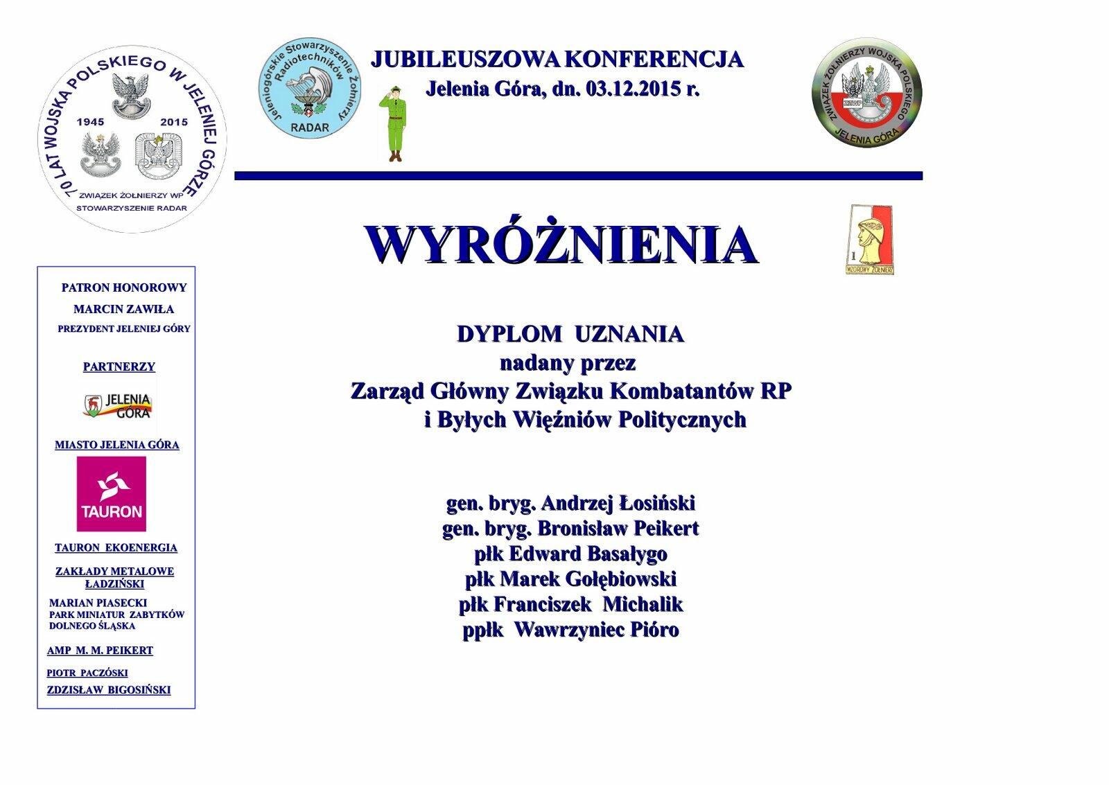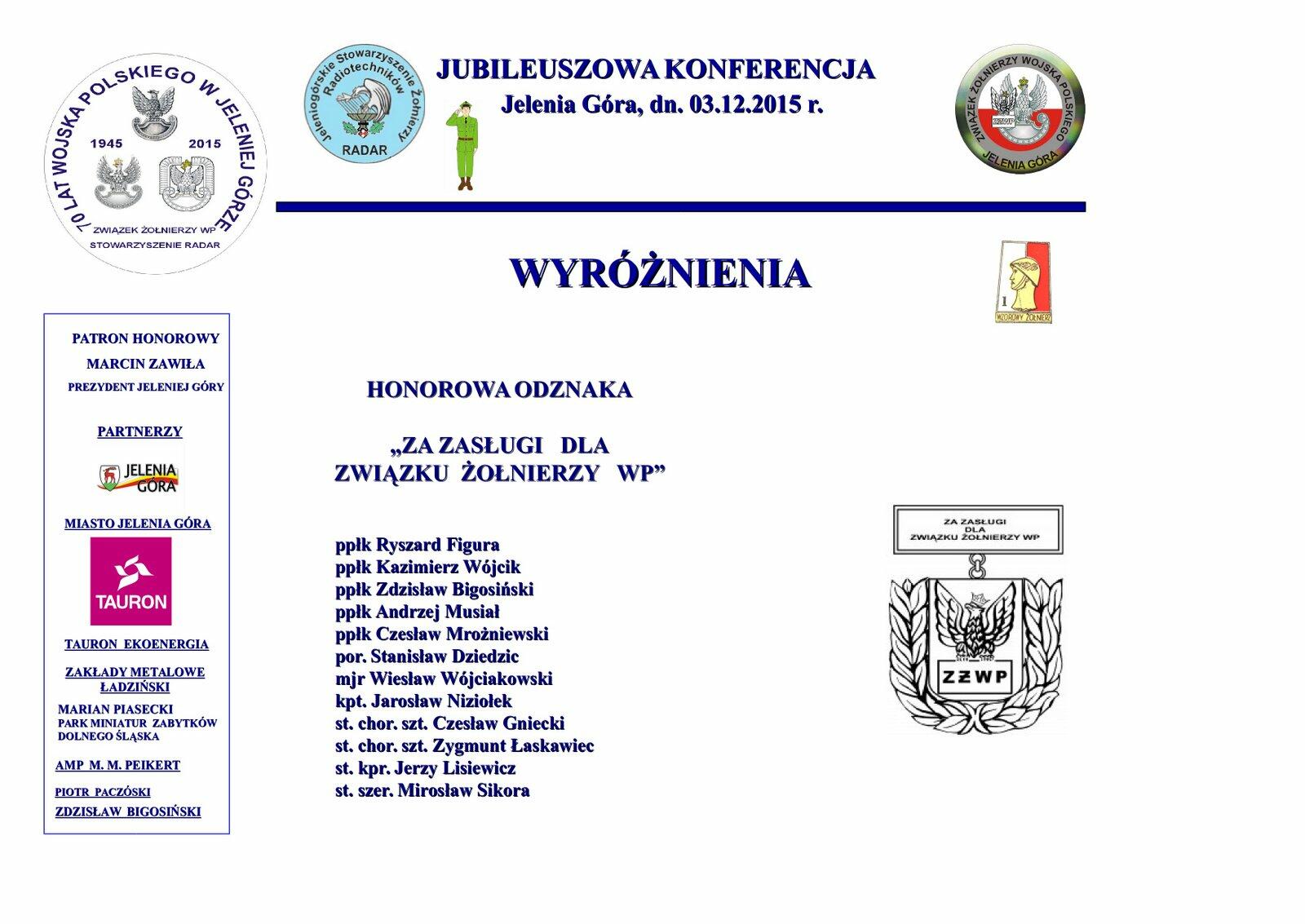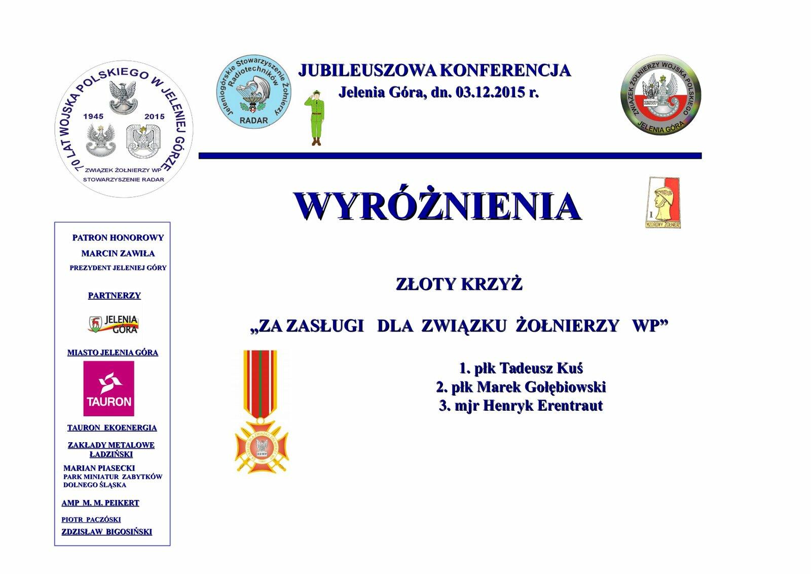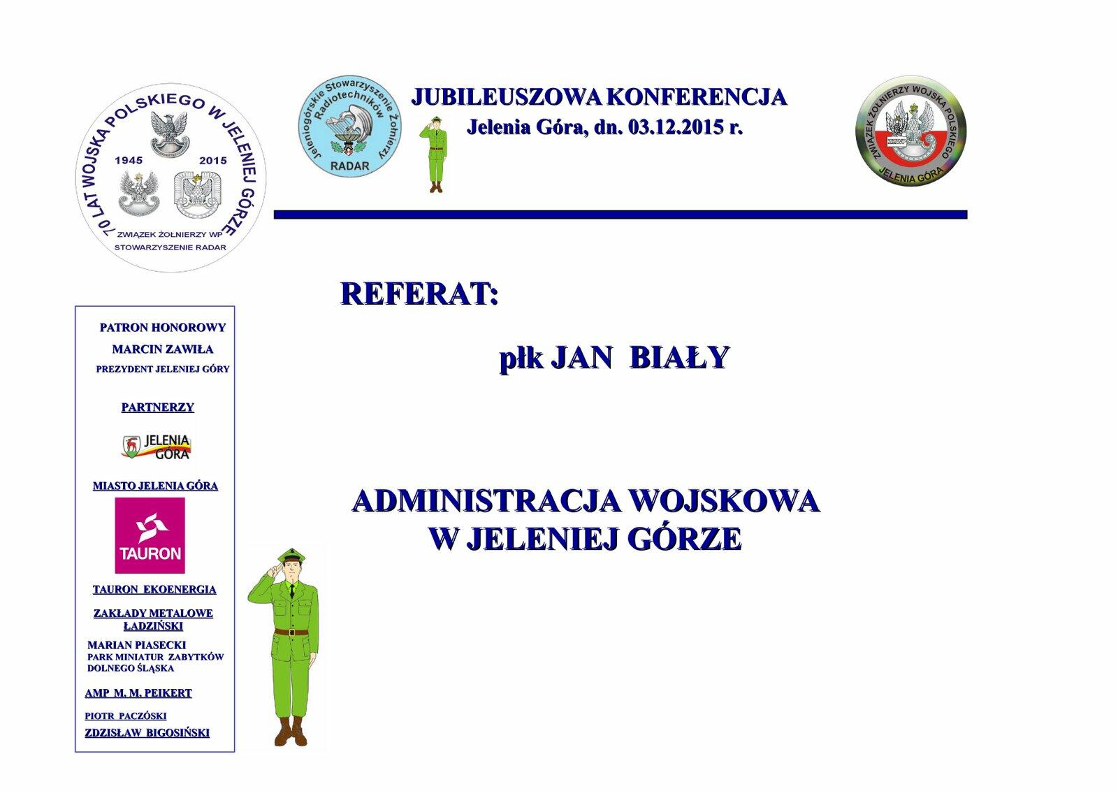 3 grudnia 2015 r. odbyła się Jubileuszowa Konferencja nt.: "70 lat Wojska Polskiego w Jeleniej Górze - 1945-2015".