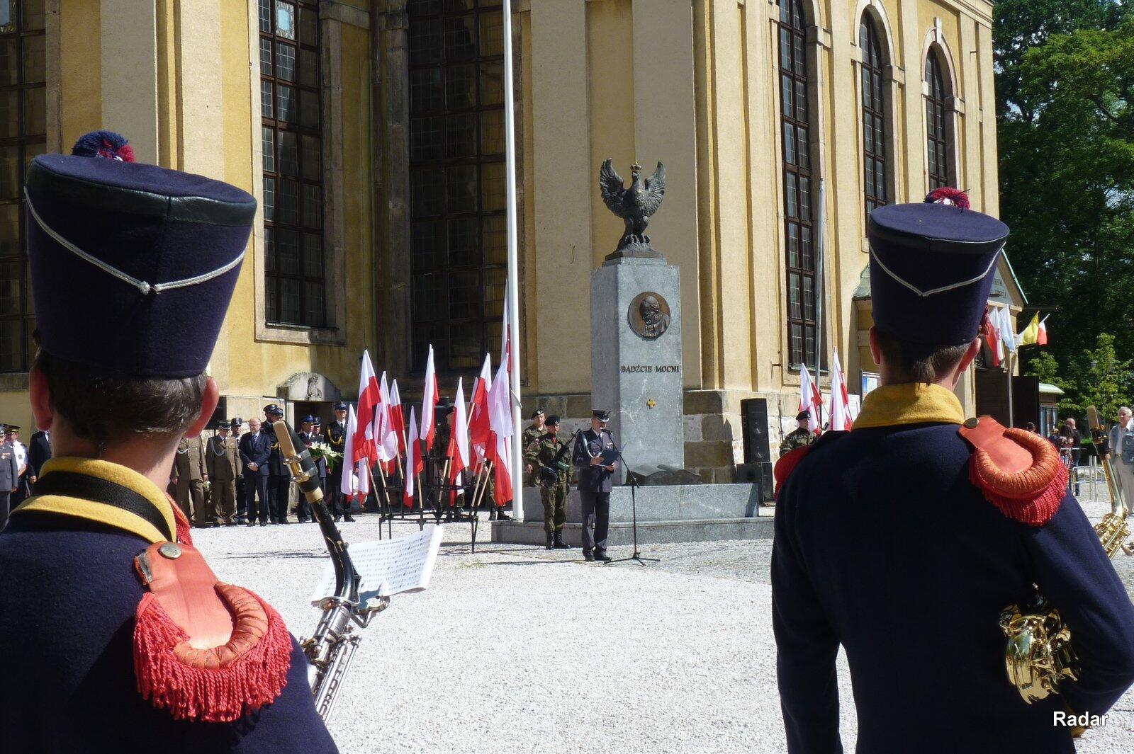Uroczystości rozpoczęły się przemarszem uczestników, przy dźwiękach Orkiestry Dętej przy Filharmonii Dolnośląskiej, ulicą 1 Maja spod Bramy Wojanowskiej na plac przy kościele garnizonowym.
