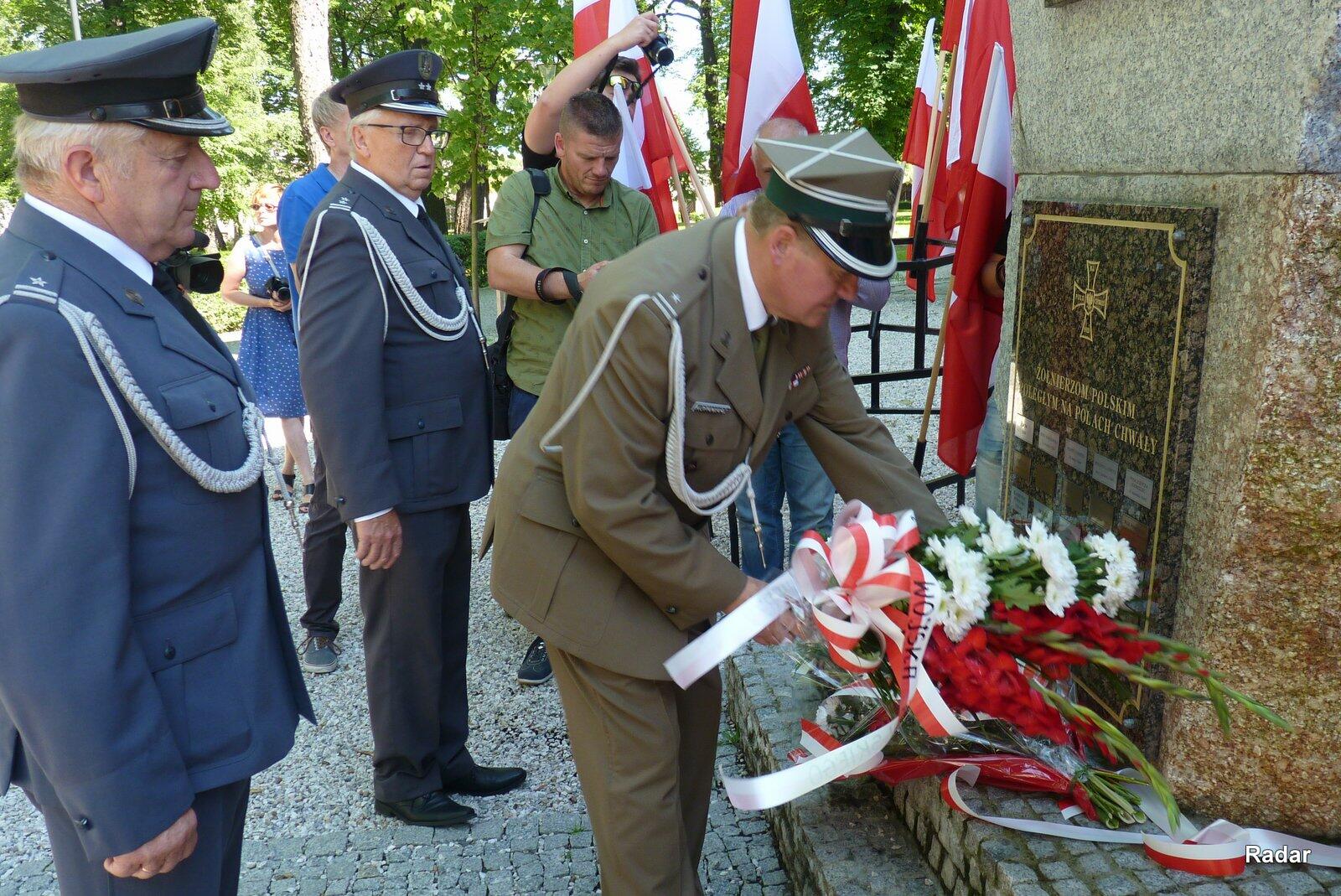 Kolejnym punktem uroczystości było złożenie kwiatów pod pomnikiem "Niepodległość i Wolność".