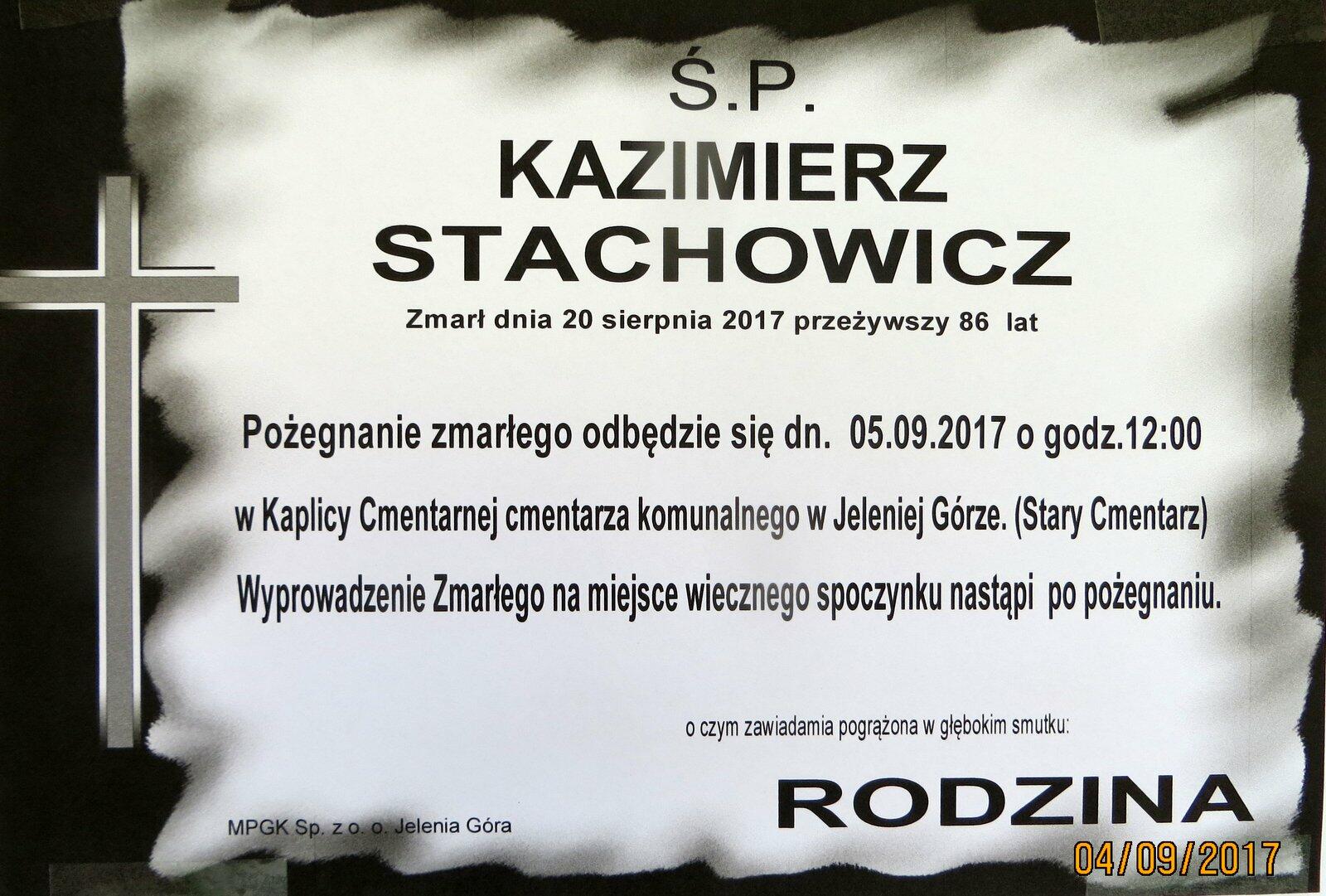 Uroczystości pogrzebowe śp. płk. Kazimierza Stachowicza odbyły się 5 września 2017 r. o godz. 12:00 na starym cmentarzu w Jeleniej Górze.