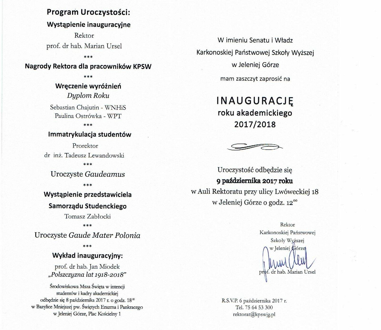Inauguracja Roku Akademickiego w Karkonoskiej Państwowej Szkole Wyższej odbyła się 9 października 2017 r.