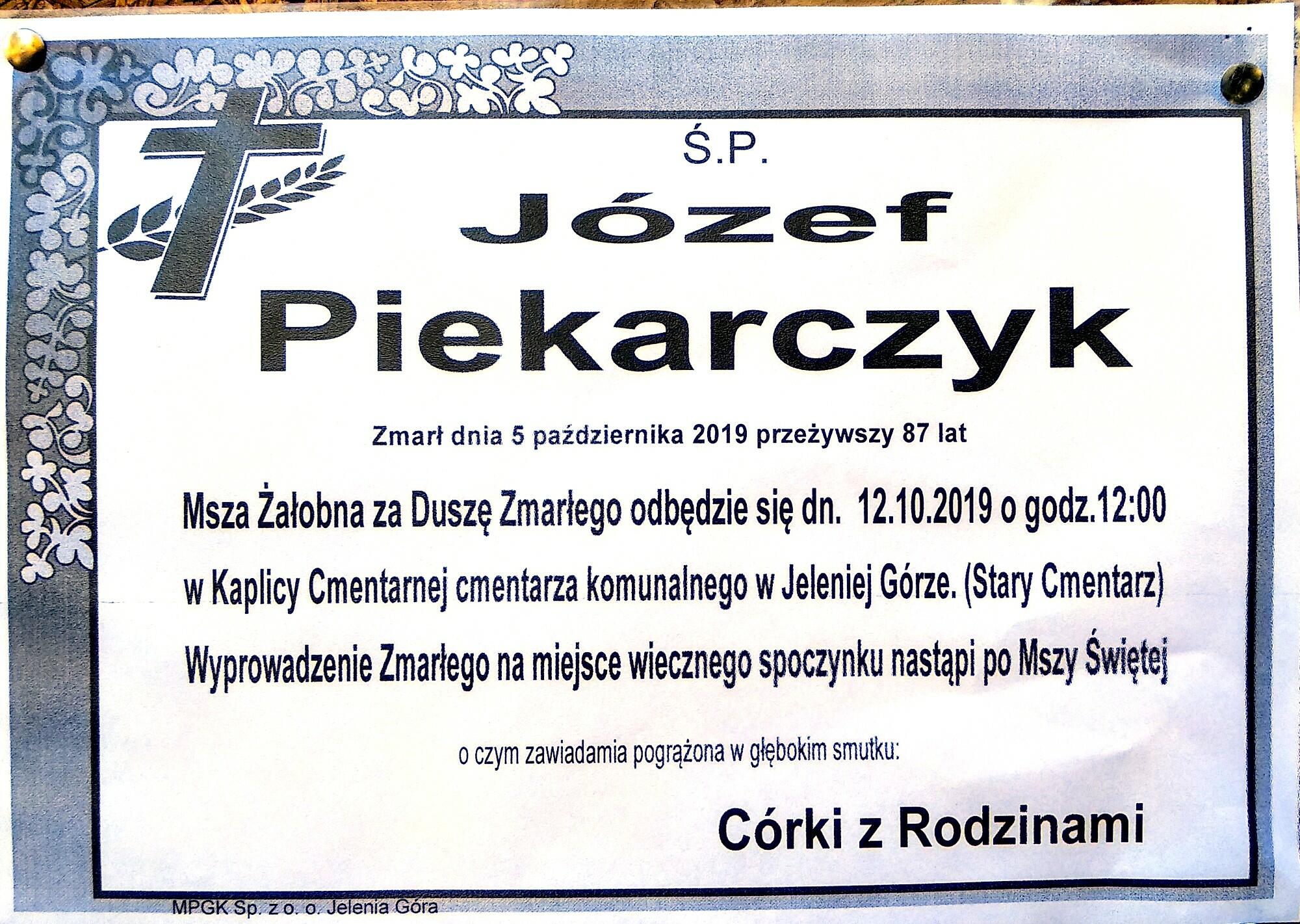 Pogrzeb odbędzie się w sobotę 12 października 2019 r. o godzinie 12:00 na starym cmentarzu w Jeleniej Górze.
