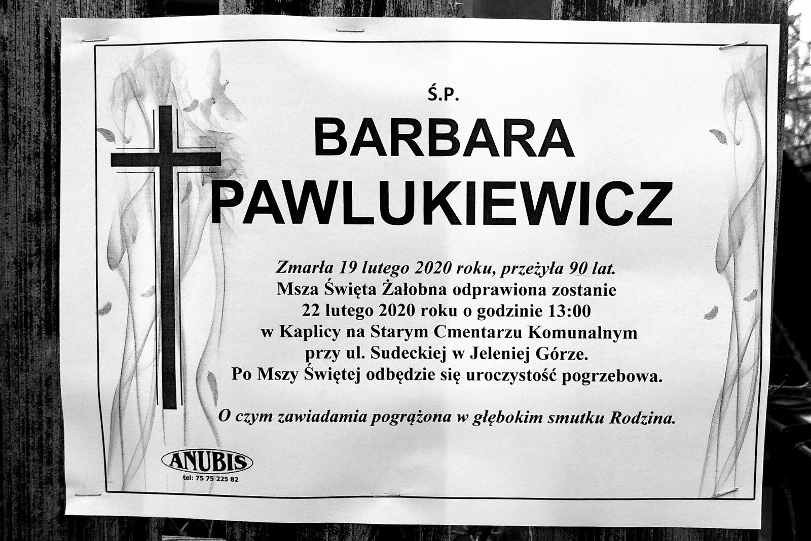 19 lutego 2020 r. zmarła w wieku 90 lat śp. Barbara Pawlukiewicz.