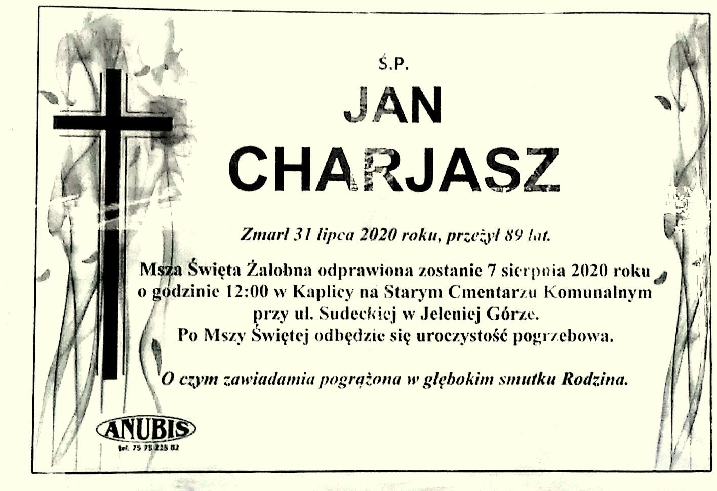 31 lipca 2020 r. zmarł w wieku 89 lat Jan Charjasz