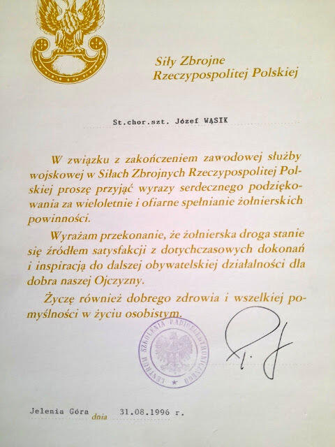 • 31 sierpnia 1996 r., w związku z reorganizacją Sił Zbrojnych, został zwolniony z zawodowej służby wojskowej i przeniesiony do rezerwy. Został emerytem.