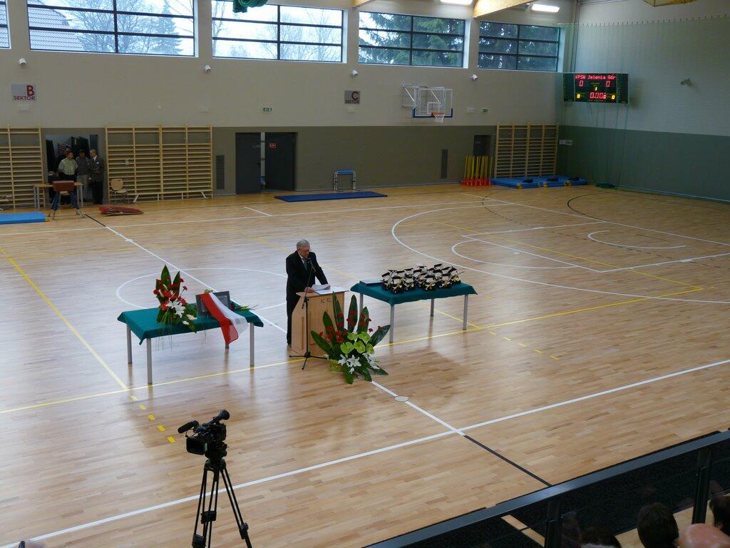 Z okazji otwarcia Hali Sportowej, od wszystkich żołnierzy byłego garnizonu jeleniogórskiego przekazuję – dla nauczycieli akademickich, instruktorów, trenerów i studentów – życzenia zadowolenia i satysfakcji z zajęć i treningów w tym pięknym, okazałym obiekcie oraz wielu wymiernych sukcesów, zarówno indywidualnych, jak i zespołowych, na arenach akademickich zmagań sportowych.