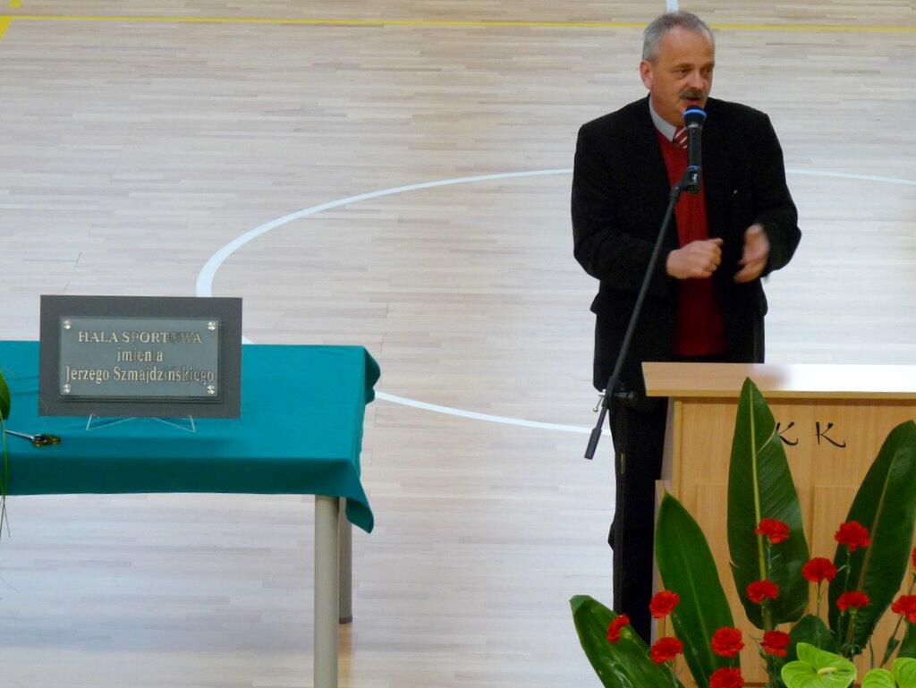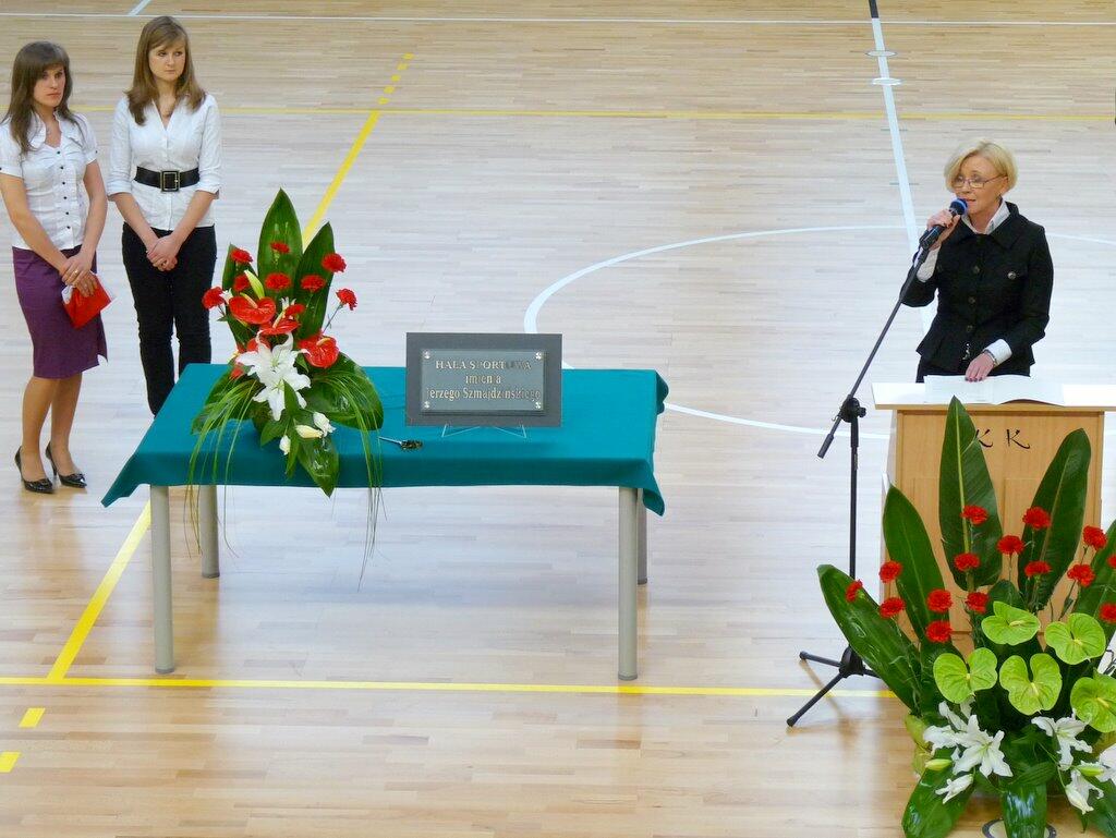 Gościem honorowym uroczystości była pani Małgorzata Sekuła-Szmajdzińska, wdowa po Jerzym Szmajdzińskim, która z wielkim wzruszeniem odsłoniła tablicę z nazwą hali.