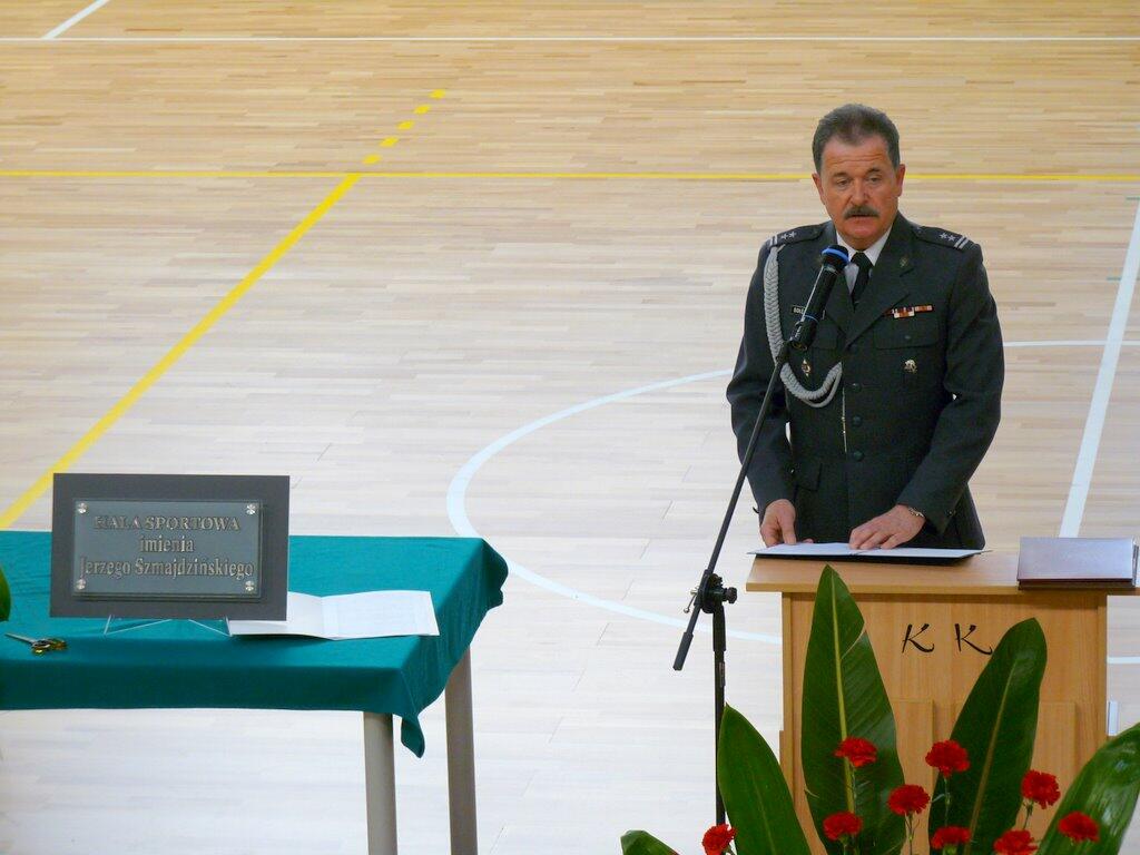 W imieniu żołnierzy radiotechników składam gratulacje i wyrazy uznania Władzom Uczelni z okazji dzisiejszego historycznego święta, związanego z otwarciem tej pięknej wielofunkcyjnej Hali Sportowej oraz z uroczystym aktem nadania jej imienia tragicznie zmarłego 10 kwietnia 2010 r. w katastrofie smoleńskiej – Jerzego Szmajdzińskiego.