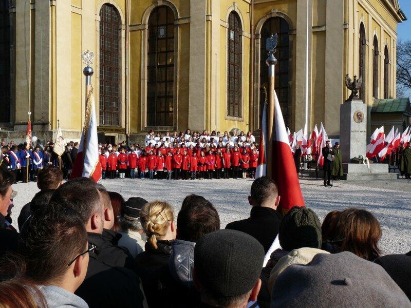 Połączone chóry szkolne odśpiewały wszystkie zwrotki Hymnu Państwowego. Orkiestra grała patriotyczne melodie.