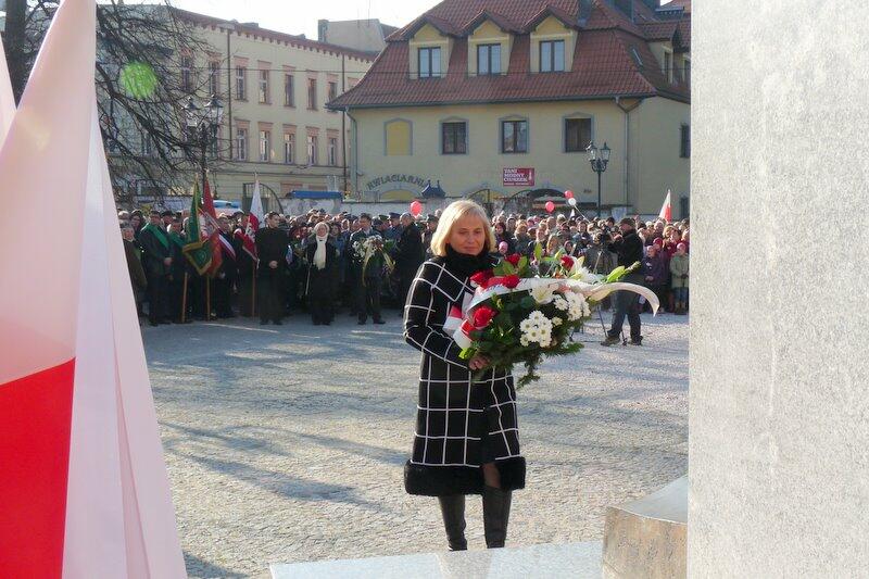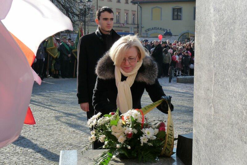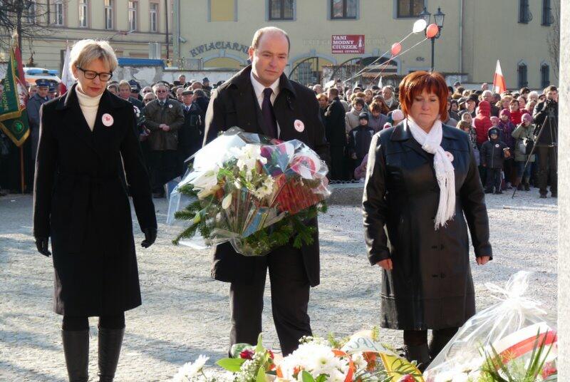 Na zakończenie manifestacji, pod pomnikiem, złożono wiązanki kwiatów.