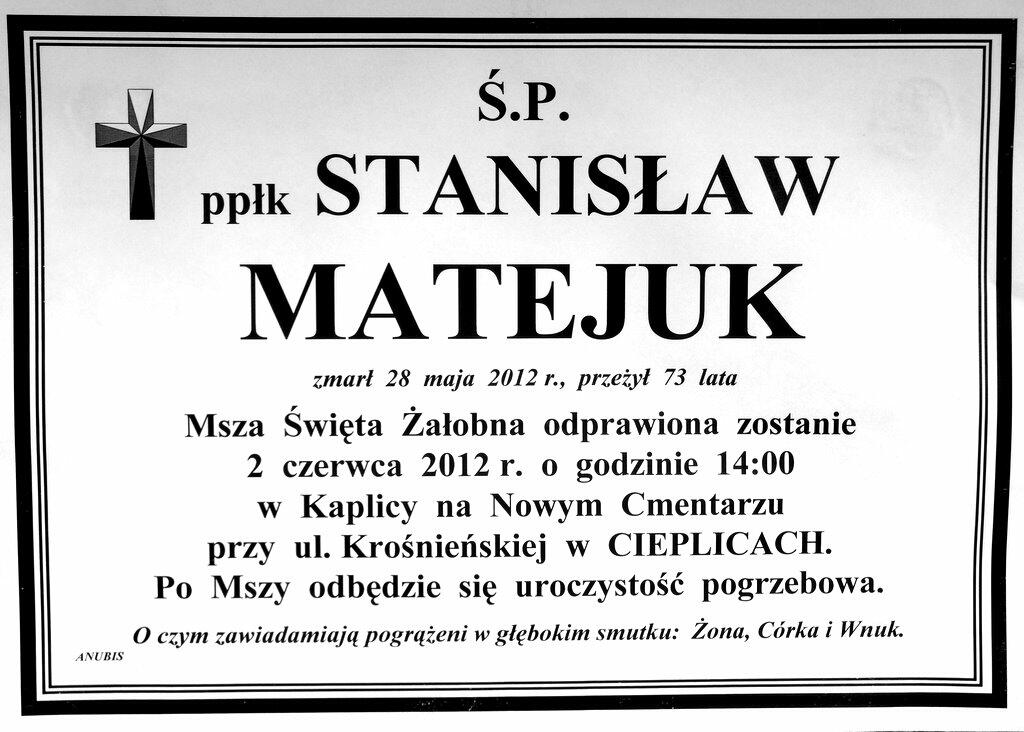 2 czerwca 2012 r. pożegnaliśmy śp. ppłk. w st.sp. Stanisława Matejuka.