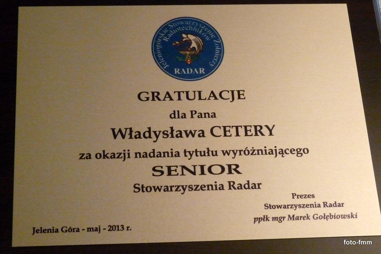 4 czerwca 2013 r. odwiedziliśmy Seniora Stowarzyszenia "Radar" ppłk. Władysława Ceterę.