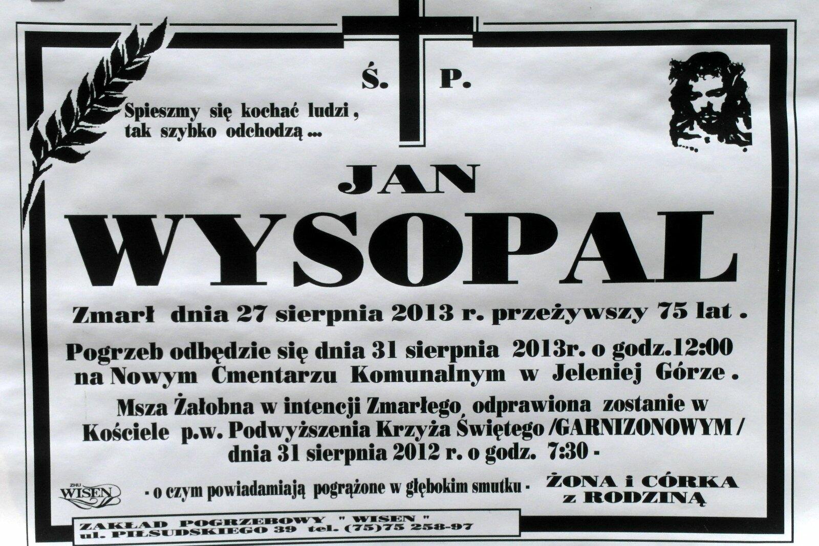 Zmarłego pożegnano 31 sierpnia 2013 r., na nowym cmentarzu w Jeleniej Górze.