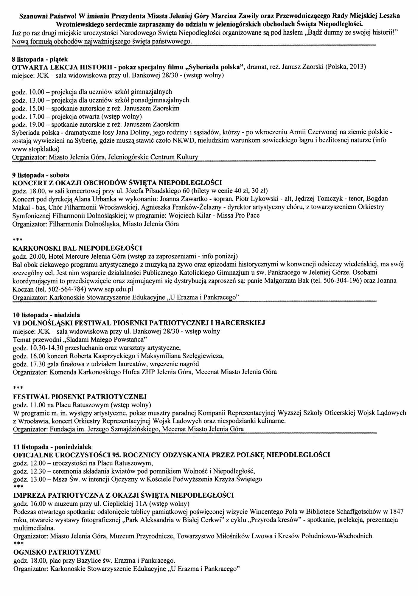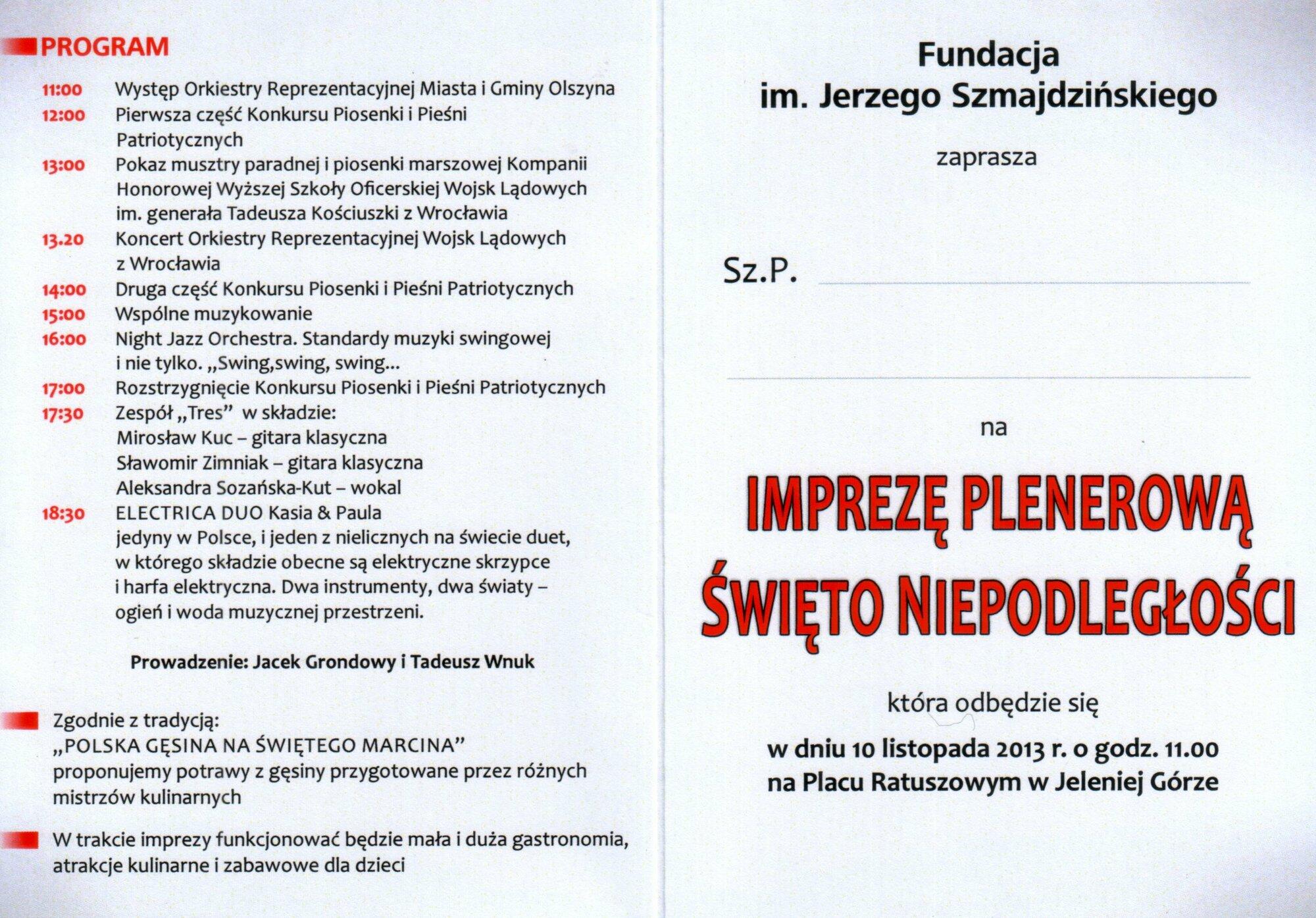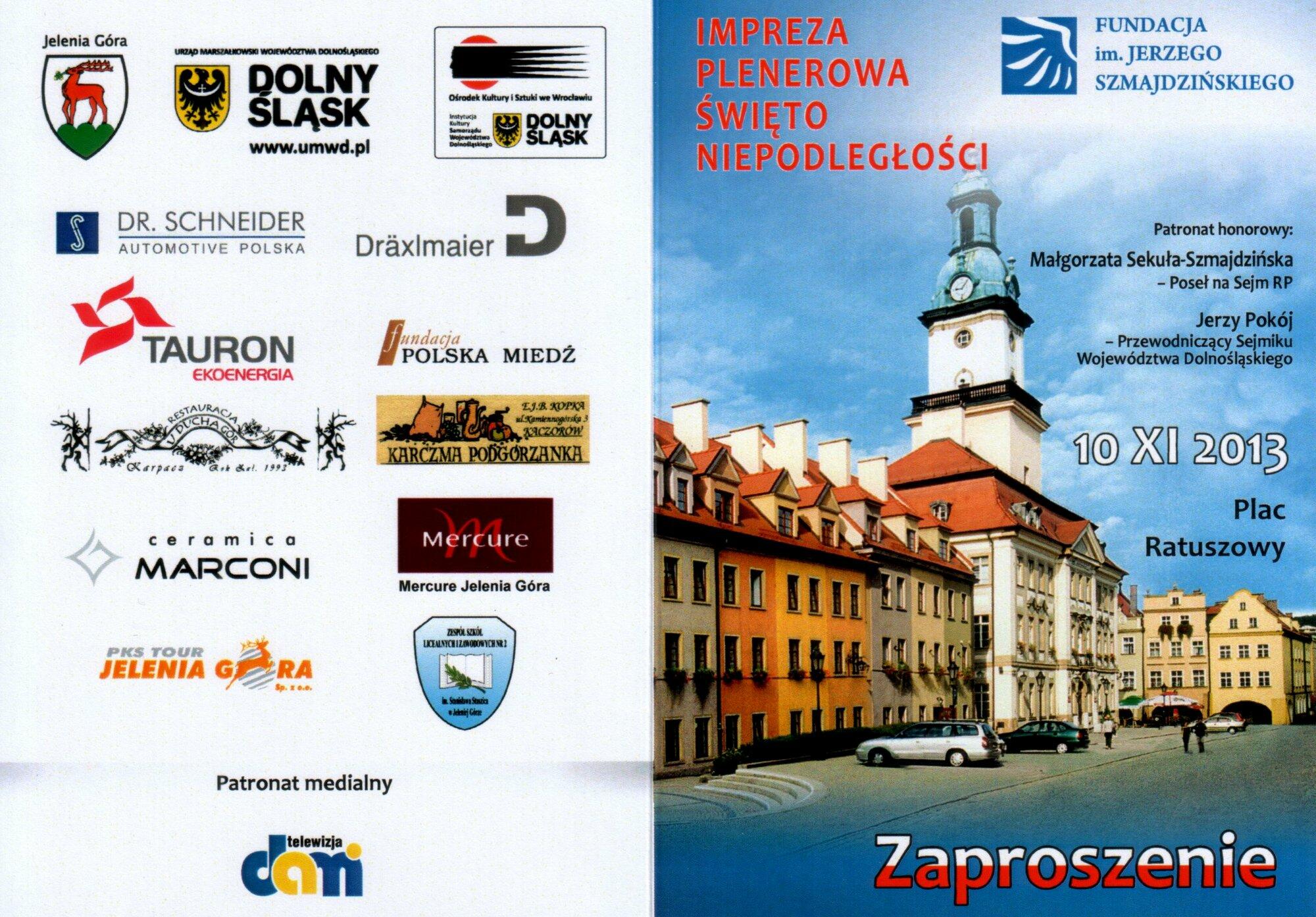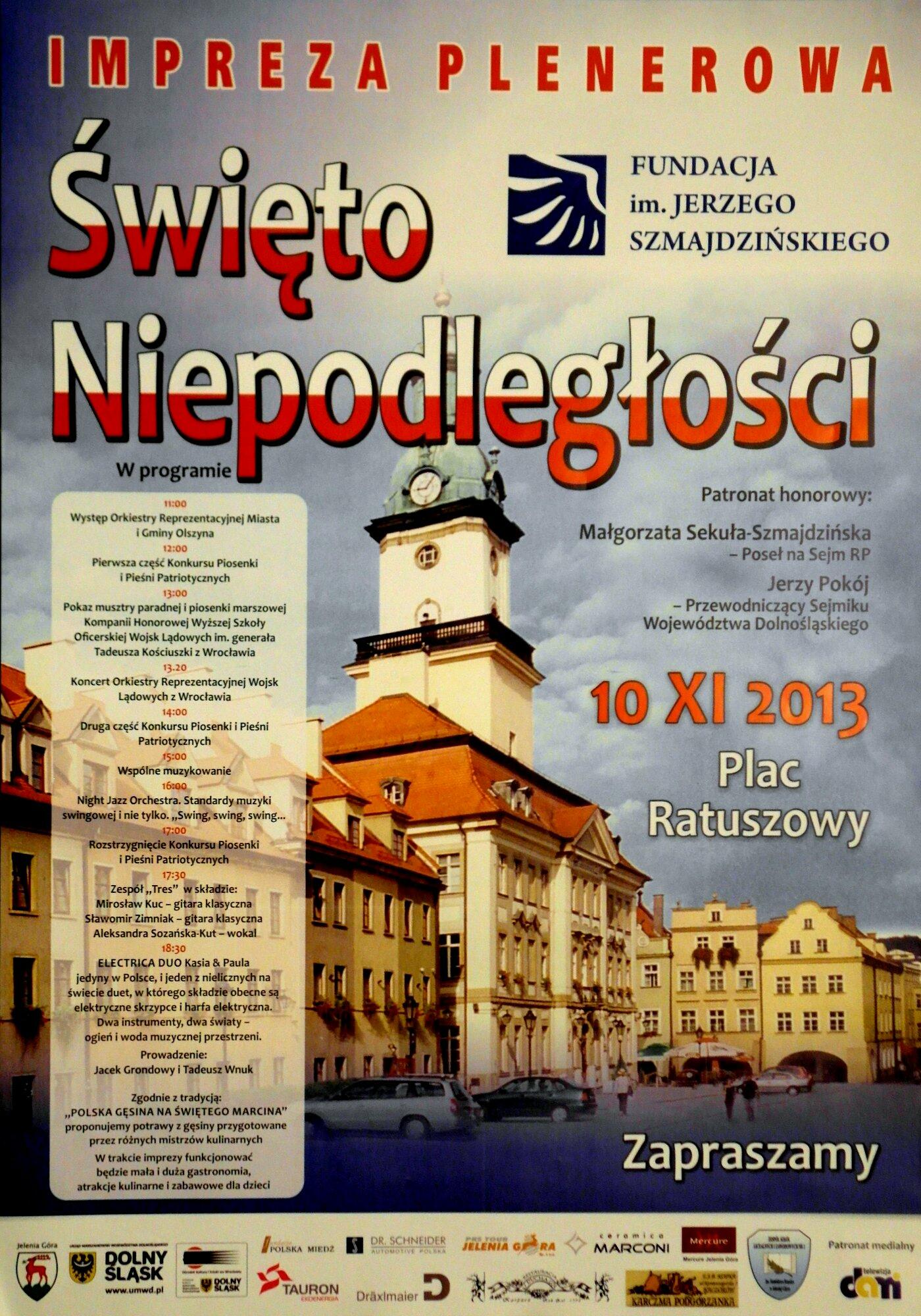 10 listopada 2013 r. Fundacja im. Jerzego Szmajdzińskiego zorganizowała w Jeleniej Górze Imprezę Plenerową - Święto Niepodległości.