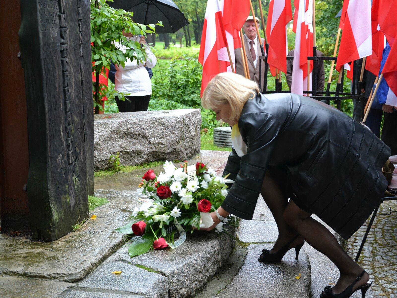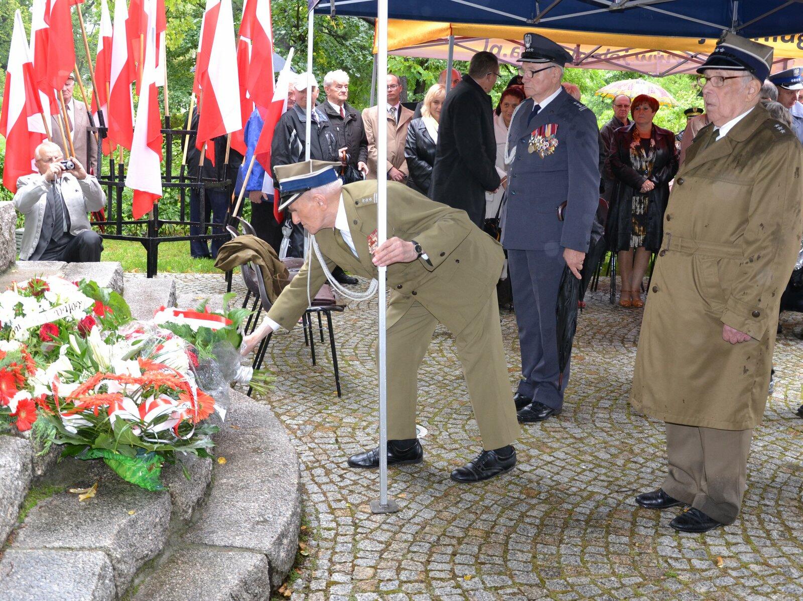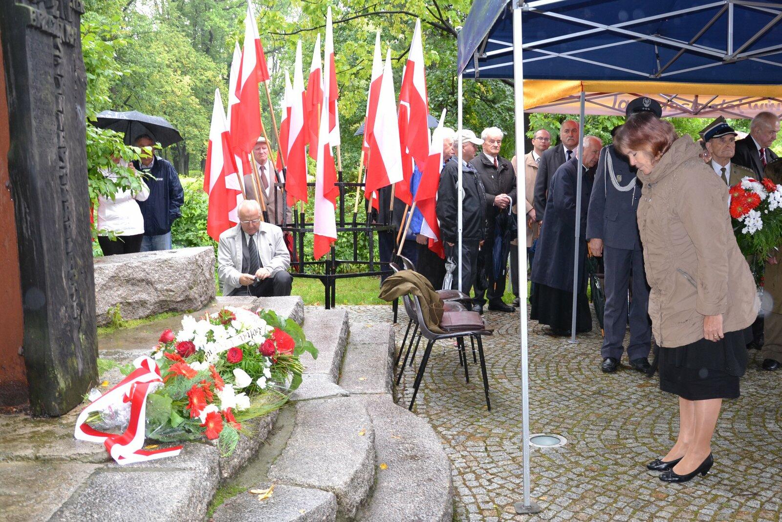 Poległych i zmarłych w wyniku II wojny światowej uczczono składając wiązanki kwiatów pod pomnikiem "Piastowskie Miecze" upamiętniającym pola bitewne i miejsca kaźni Polaków.