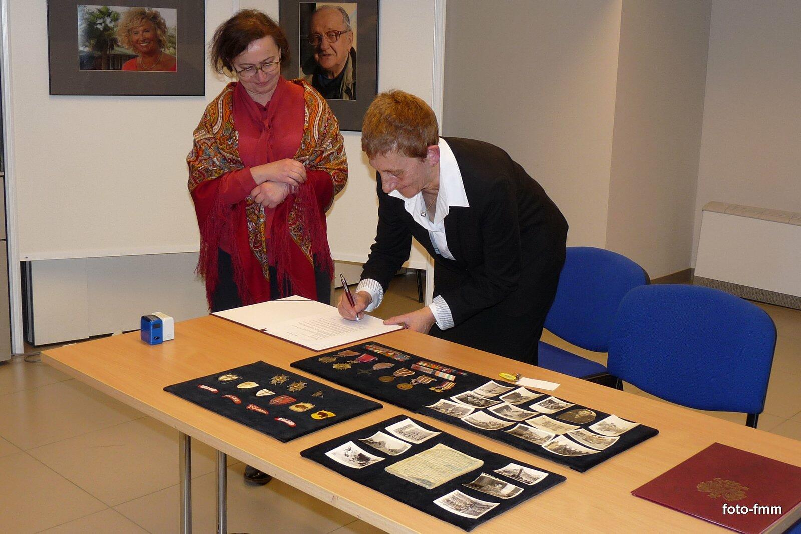 Podpisanie aktu przekazania zbioru poprzedziło wystąpienie Prezesa jeleniogórskiego Koła Związku Żołnierzy WP ppłka Edwarda Basałygo, który zapoznał zebranych z opisanymi w przekazywanym pamiętniku wojennymi losami Wojciecha Stelmacha .