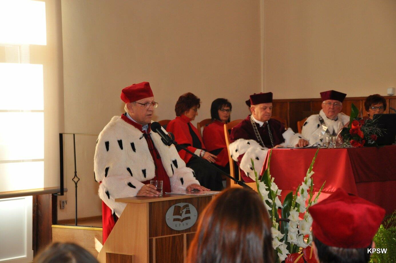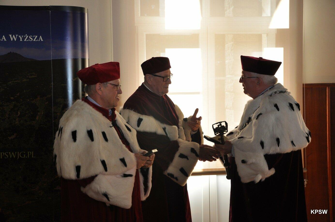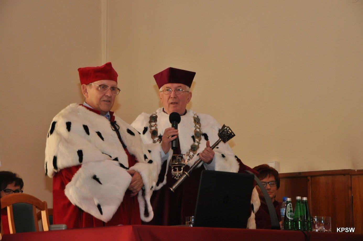 W tym to dniu Rektor-senior KPSW - prof. dr hab. Henryk Gradkowski przekazał insygnia władzy prof. dr. hab. Marianowi Urselowi - obecnemu Rektorowi KPSW.
