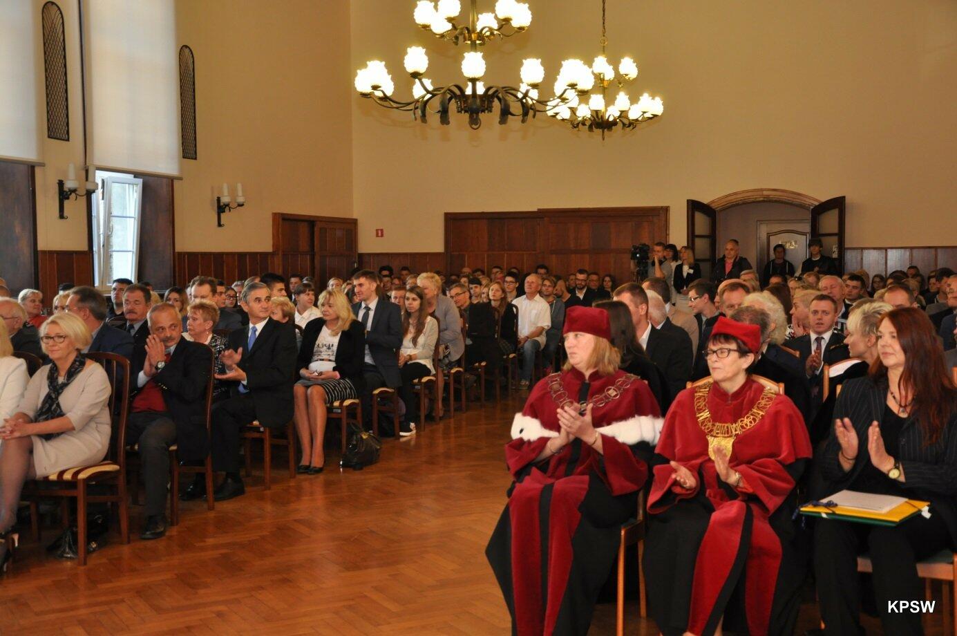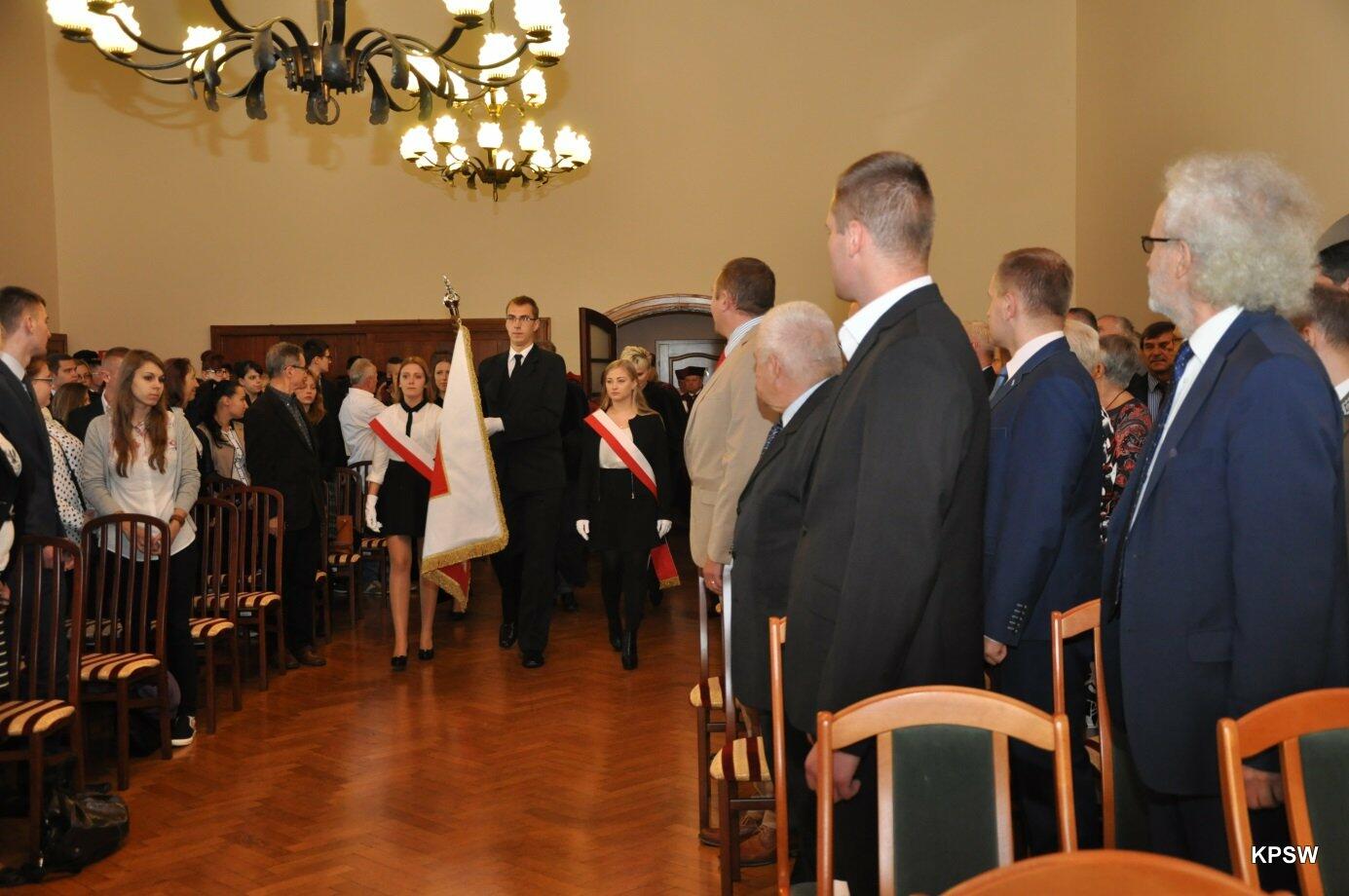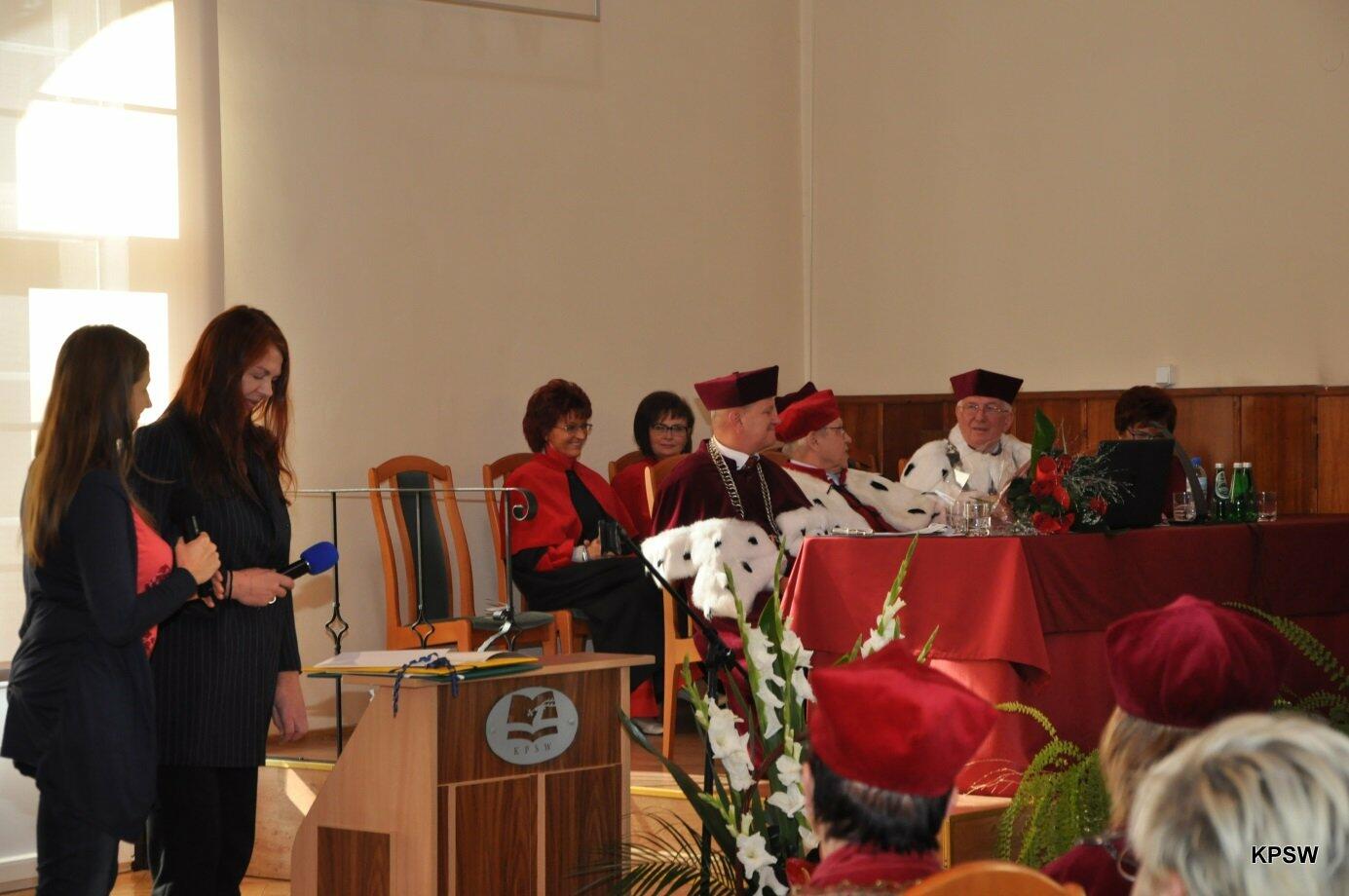 W tym to dniu Rektor-senior KPSW - prof. dr hab. Henryk Gradkowski przekazał insygnia władzy prof. dr. hab. Marianowi Urselowi - obecnemu Rektorowi KPSW.