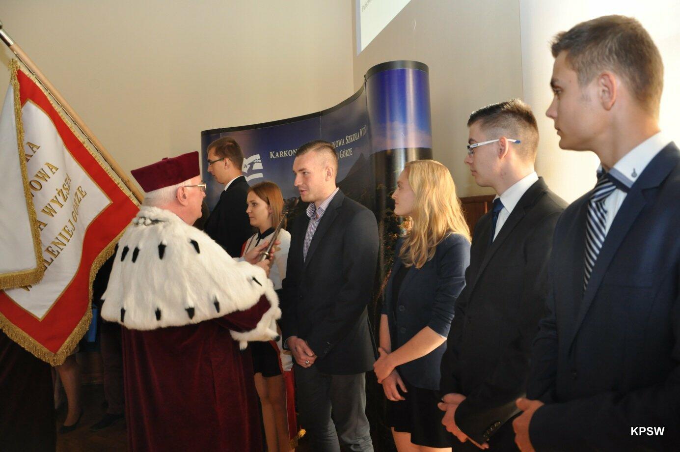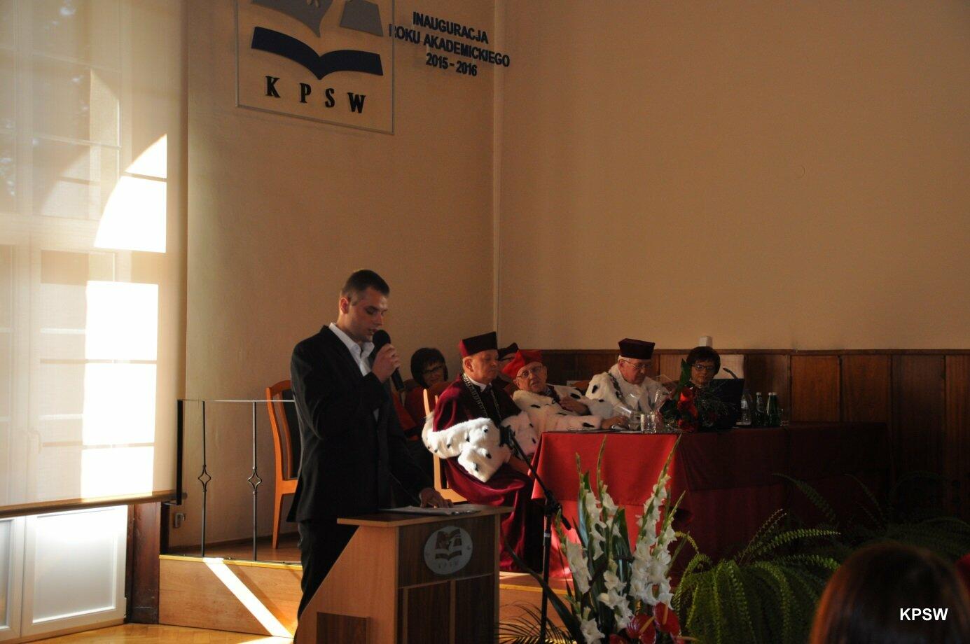 Immatrykulację studentów poprowadził Prorektor KPSW – dr inż. Tadeusz Lewandowski. Po wypowiedzeniu słów Przysięgi KPSW, symbolicznym naznaczeniu buławą przez Rektora oraz otrzymaniu „teczki studenta”, młodzi ludzie stali się oficjalnie Studentami.