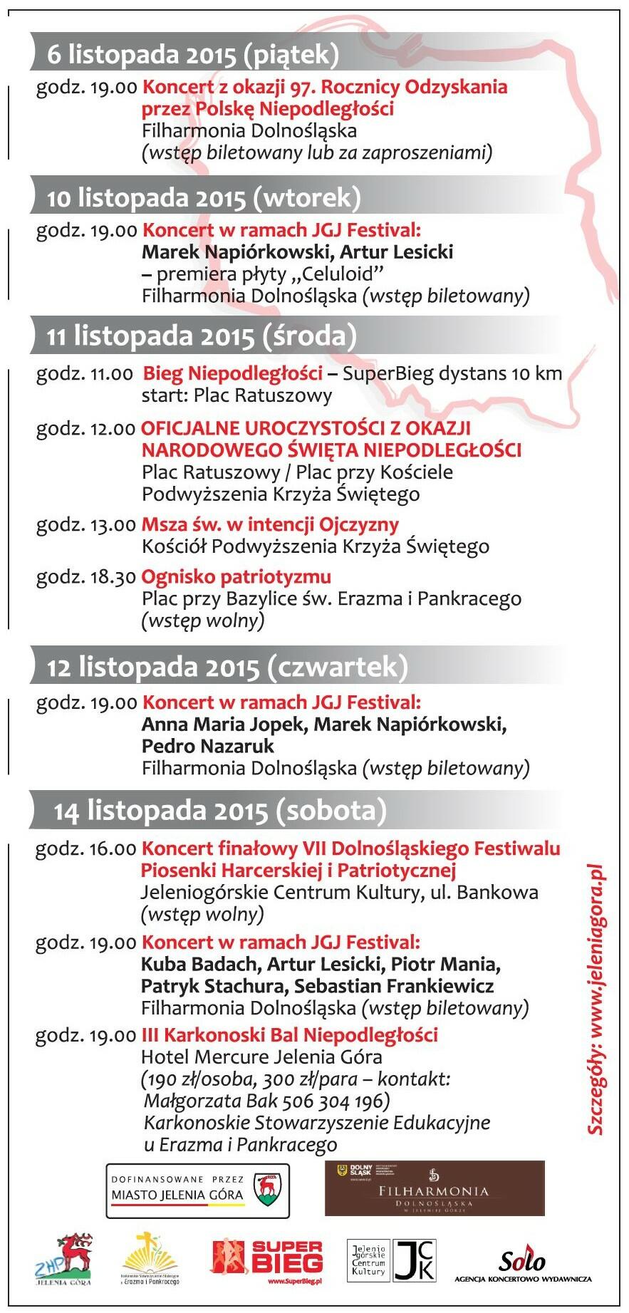 W Jeleniej Górze obchody Narodowego Święta Niepodległości rozpoczęły się już 6 listopada 2015 r. koncertem w Filharmonii Dolnośląskiej.