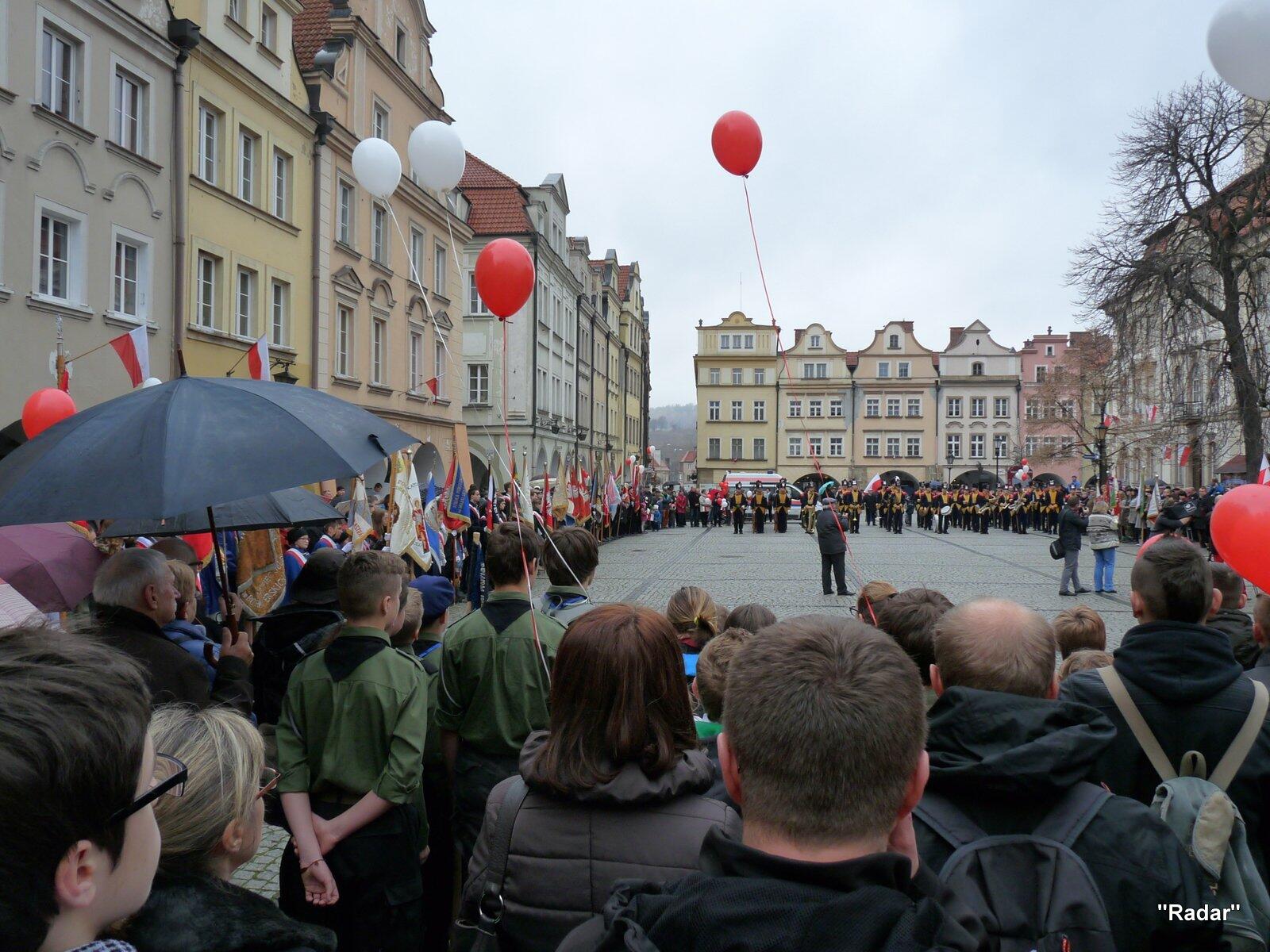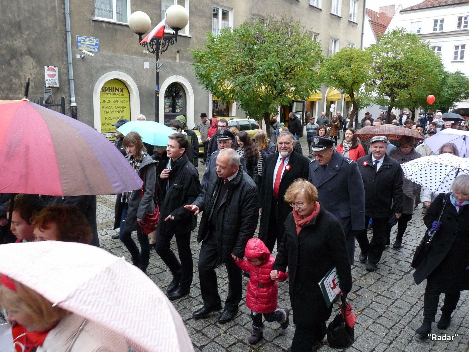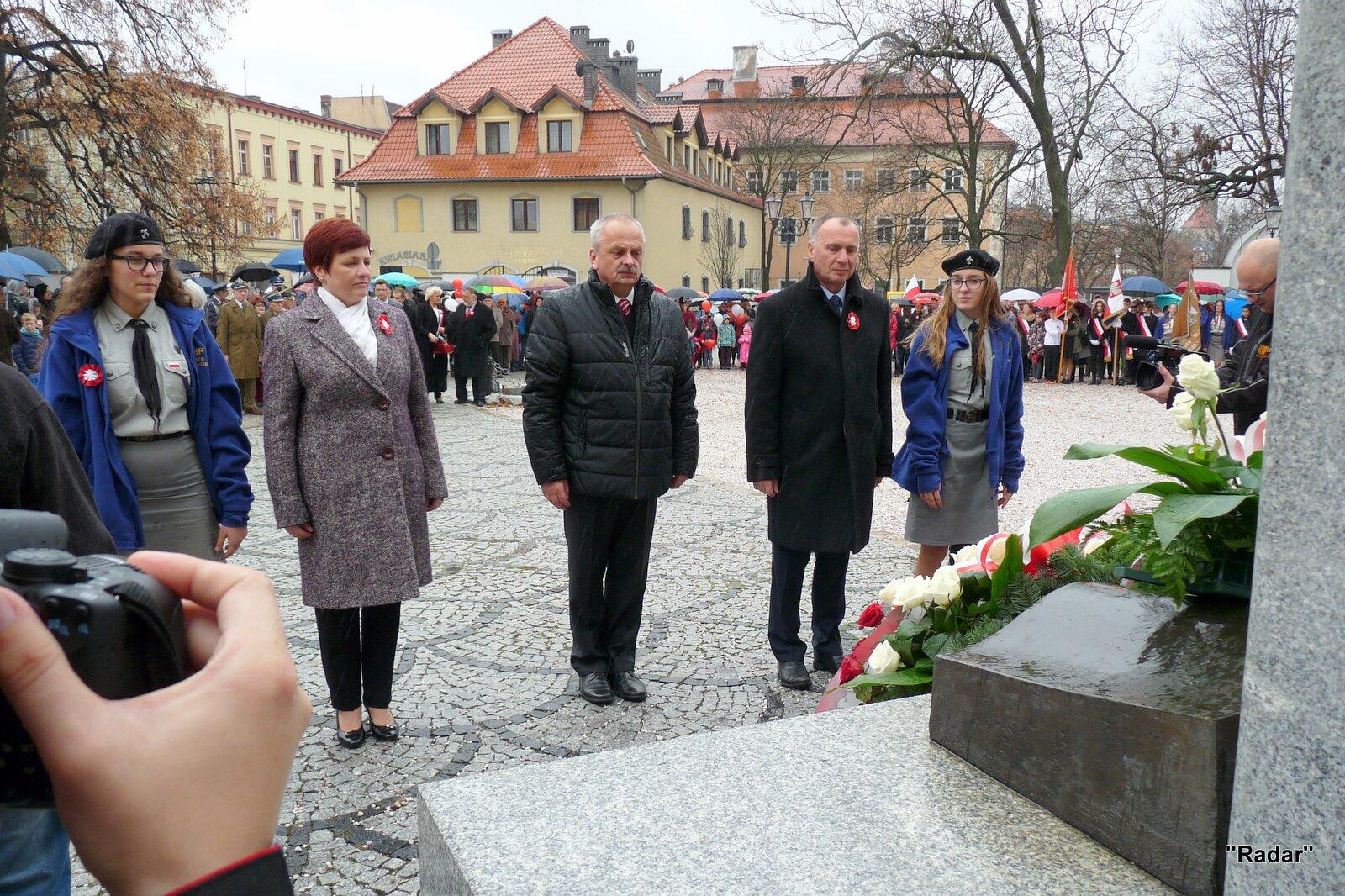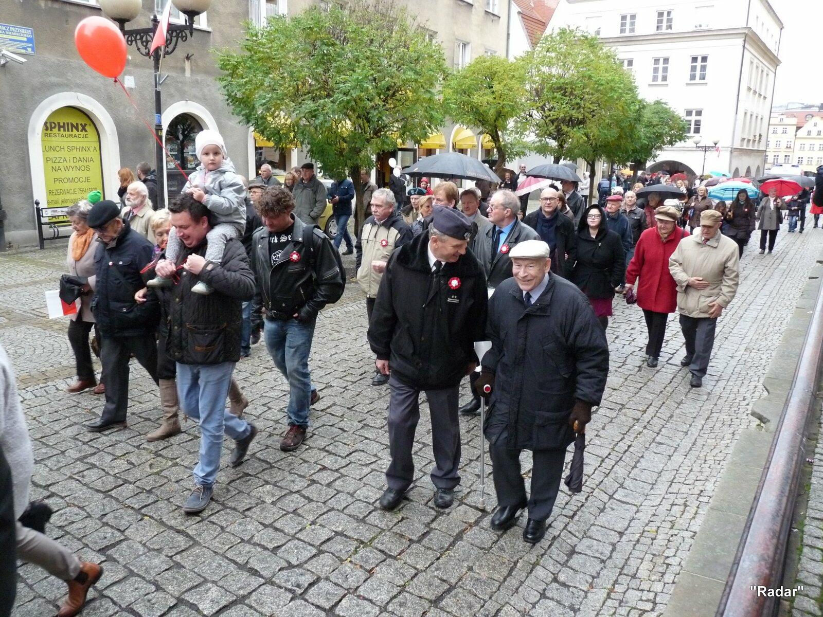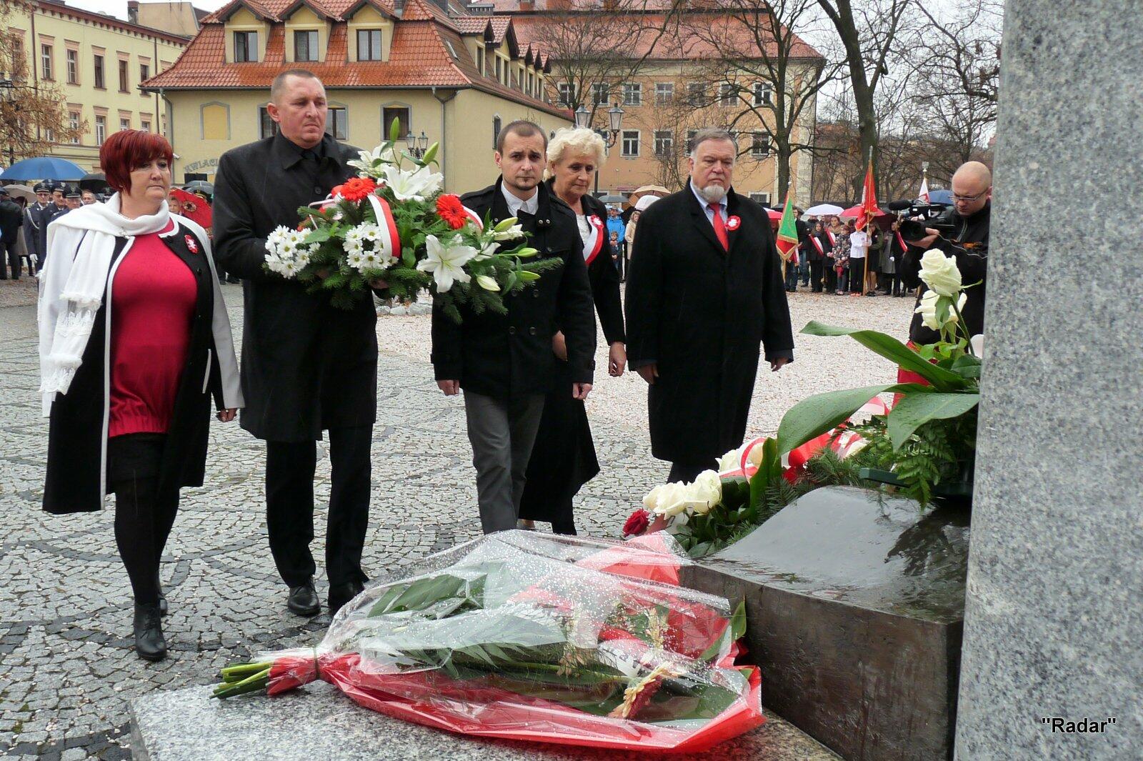 Licznie zebrani mieszkańcy Jeleniej Góry udali się ulicą Konopnickiej i ulicą 1 Maja pod pomnik "Niepodległość i Wolność", gdzie złożono wiązanki kwiatów.