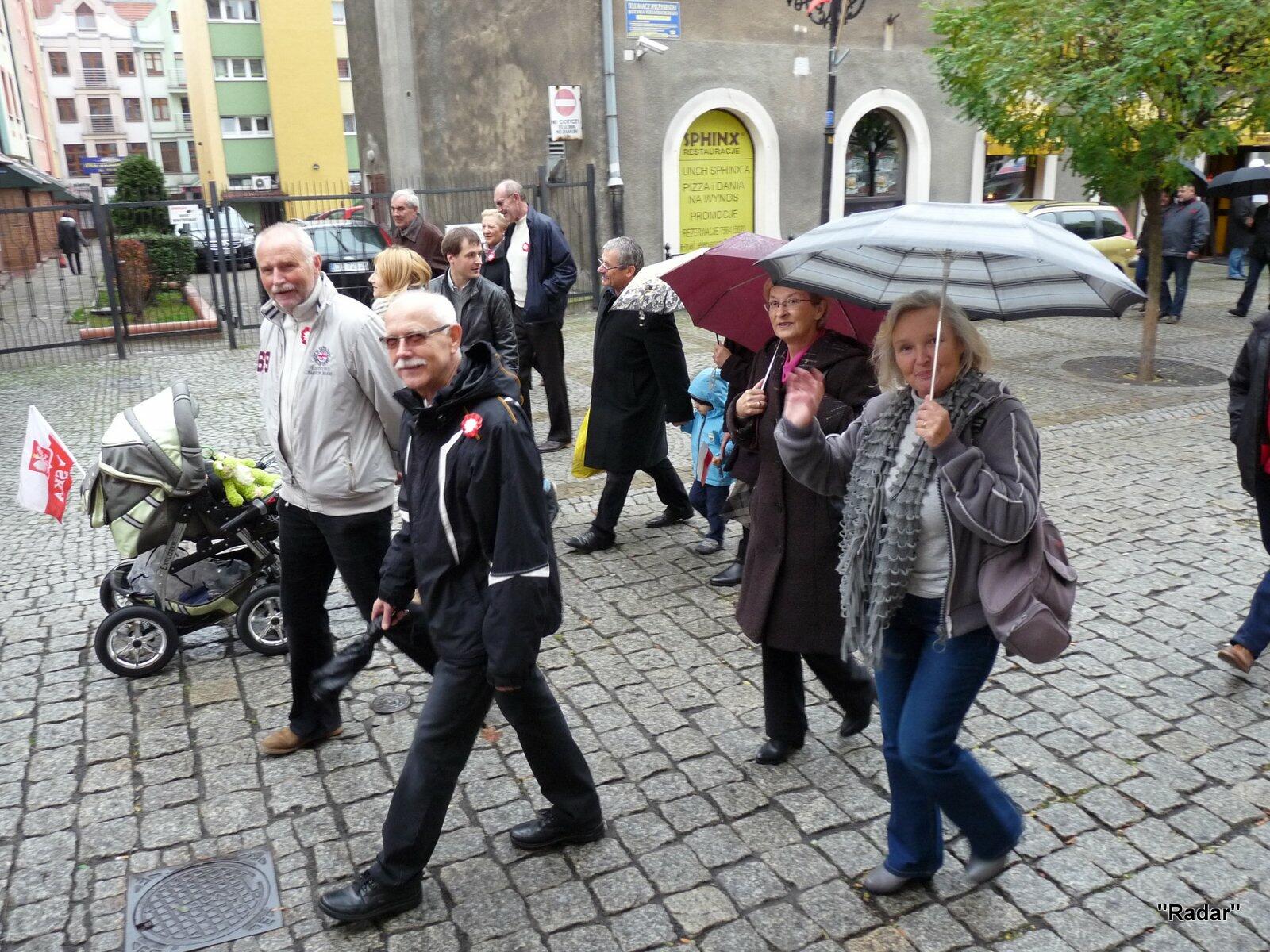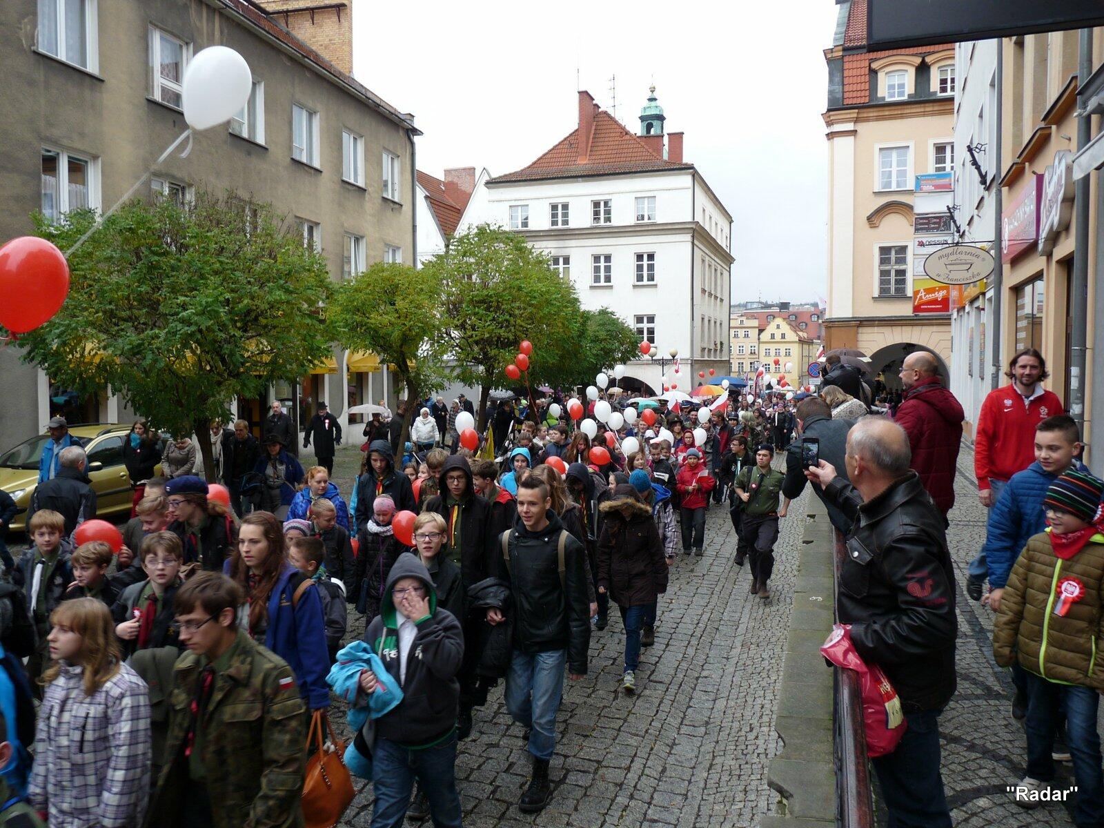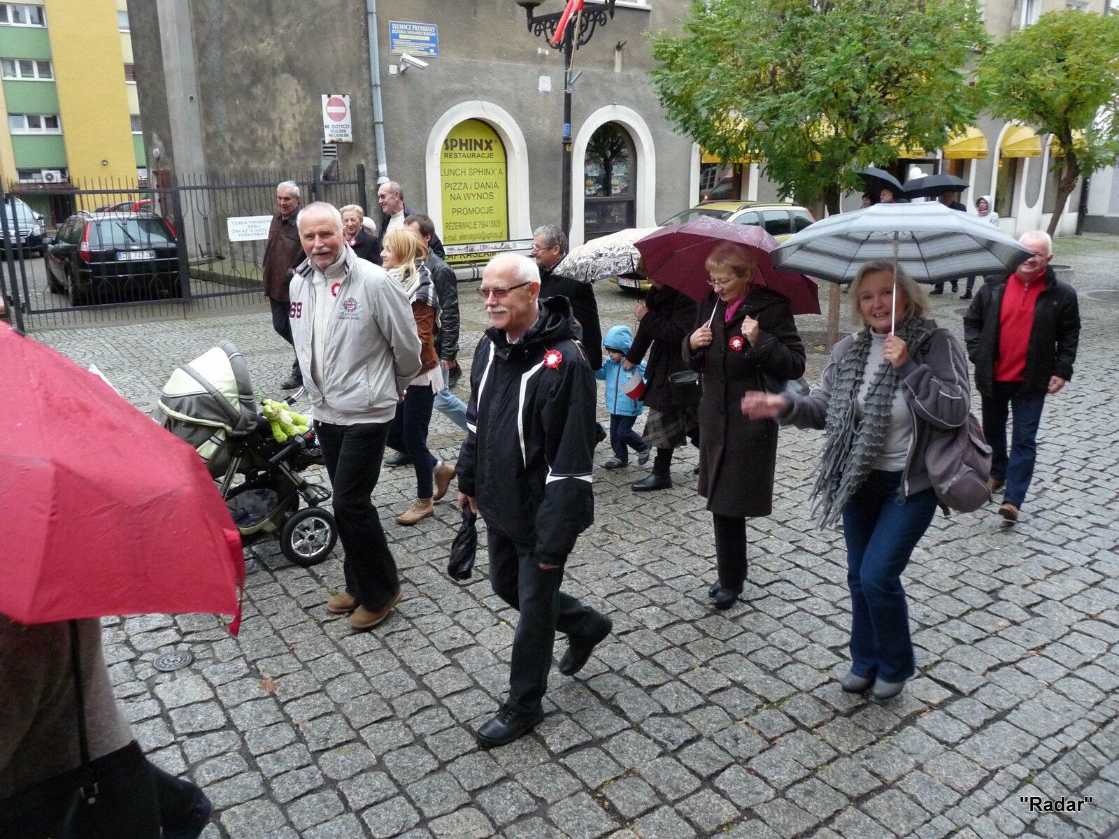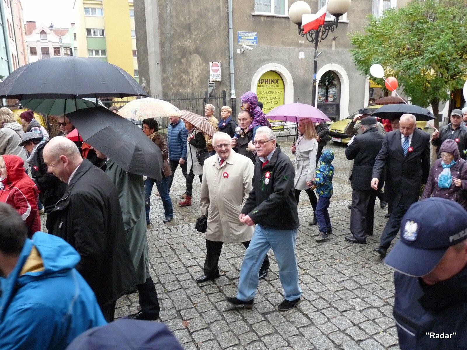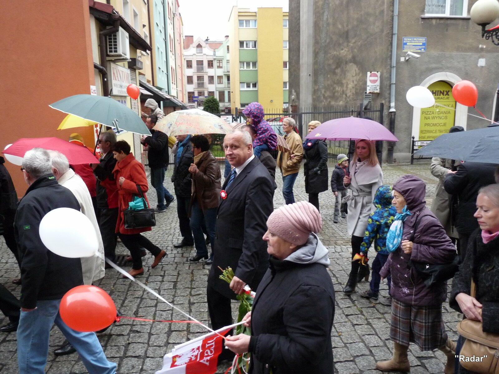 Licznie zebrani mieszkańcy Jeleniej Góry udali się ulicą Konopnickiej i ulicą 1 Maja pod pomnik "Niepodległość i Wolność", gdzie złożono wiązanki kwiatów.