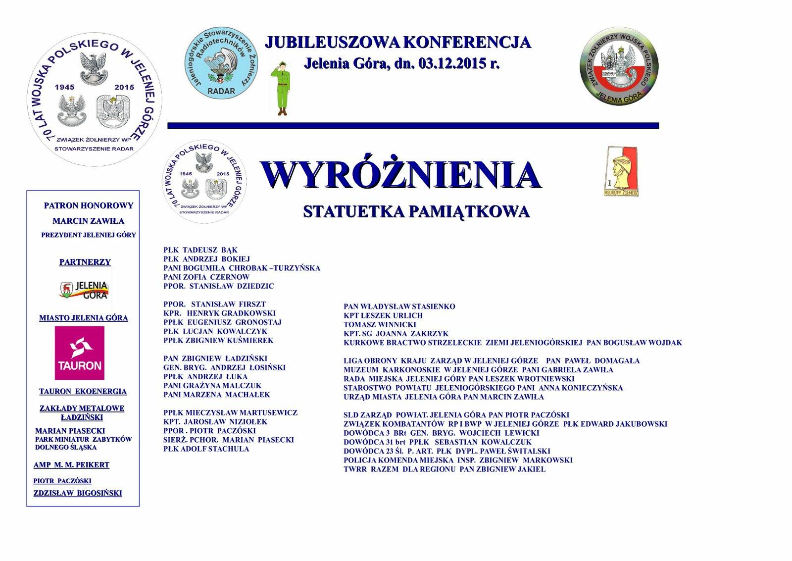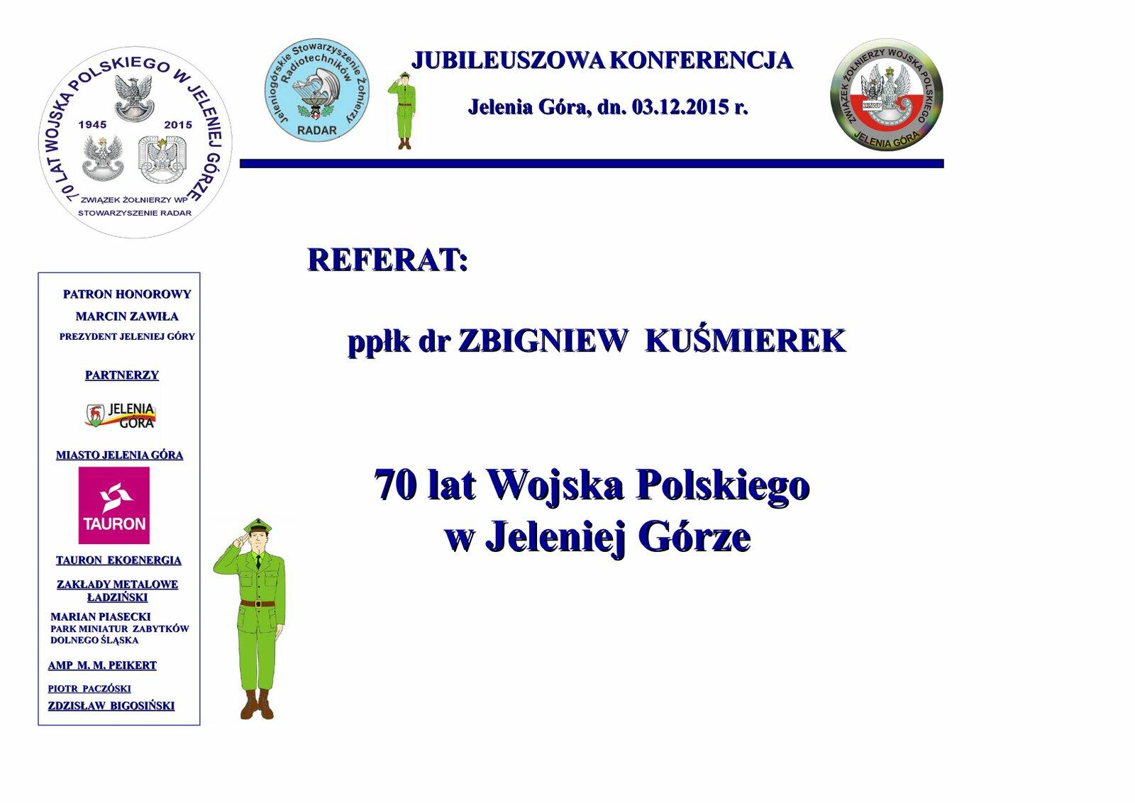 3 grudnia 2015 r. odbyła się Jubileuszowa Konferencja nt.: "70 lat Wojska Polskiego w Jeleniej Górze - 1945-2015".
