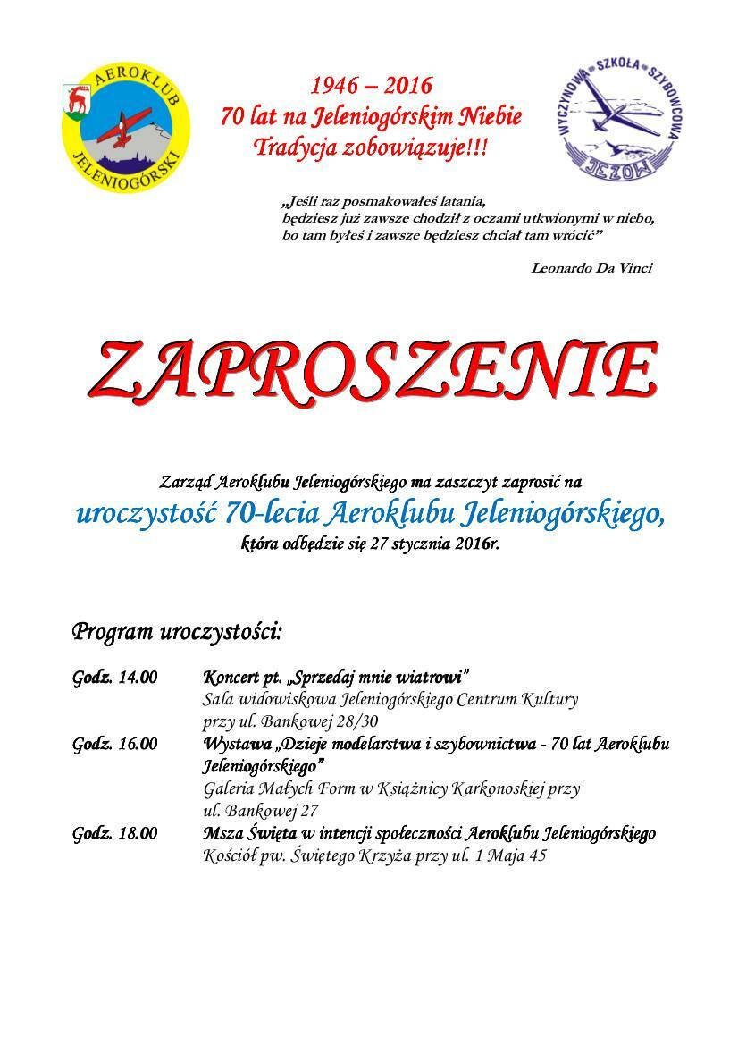 27 stycznia 2016 r. odbyły się uroczyste obchody 70-lecia Aeroklubu Jeleniogórskiego.