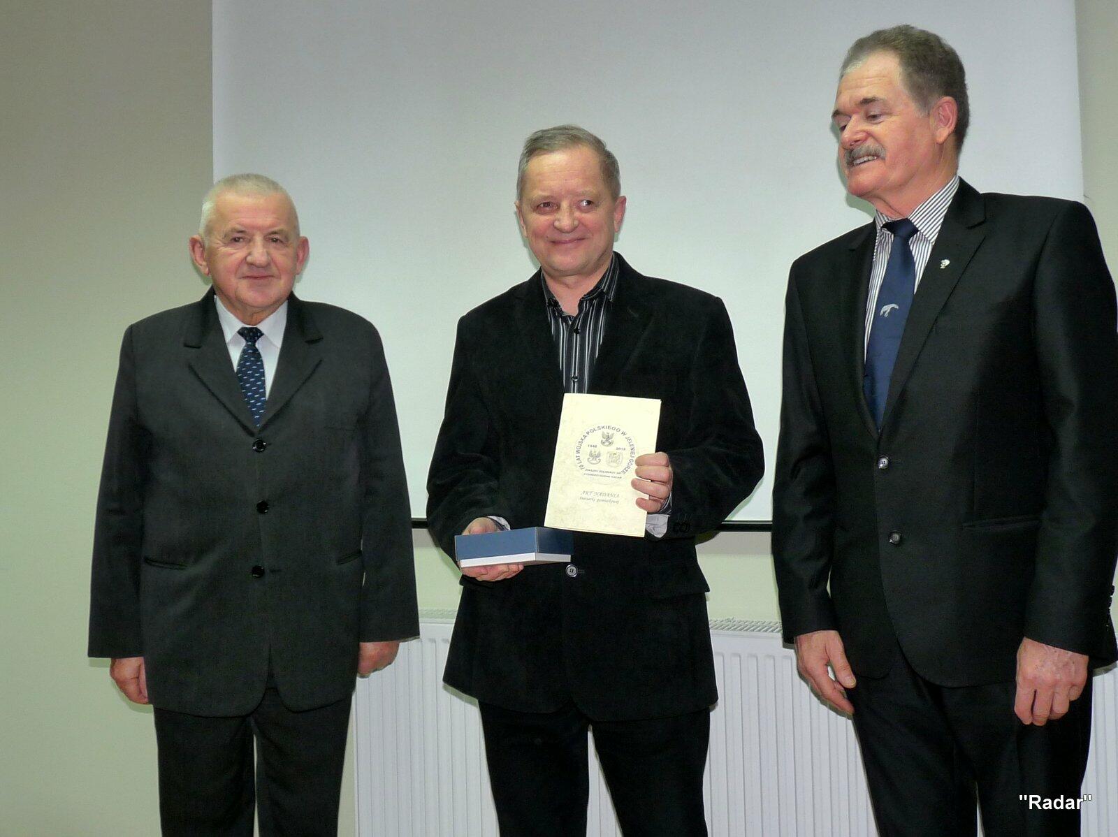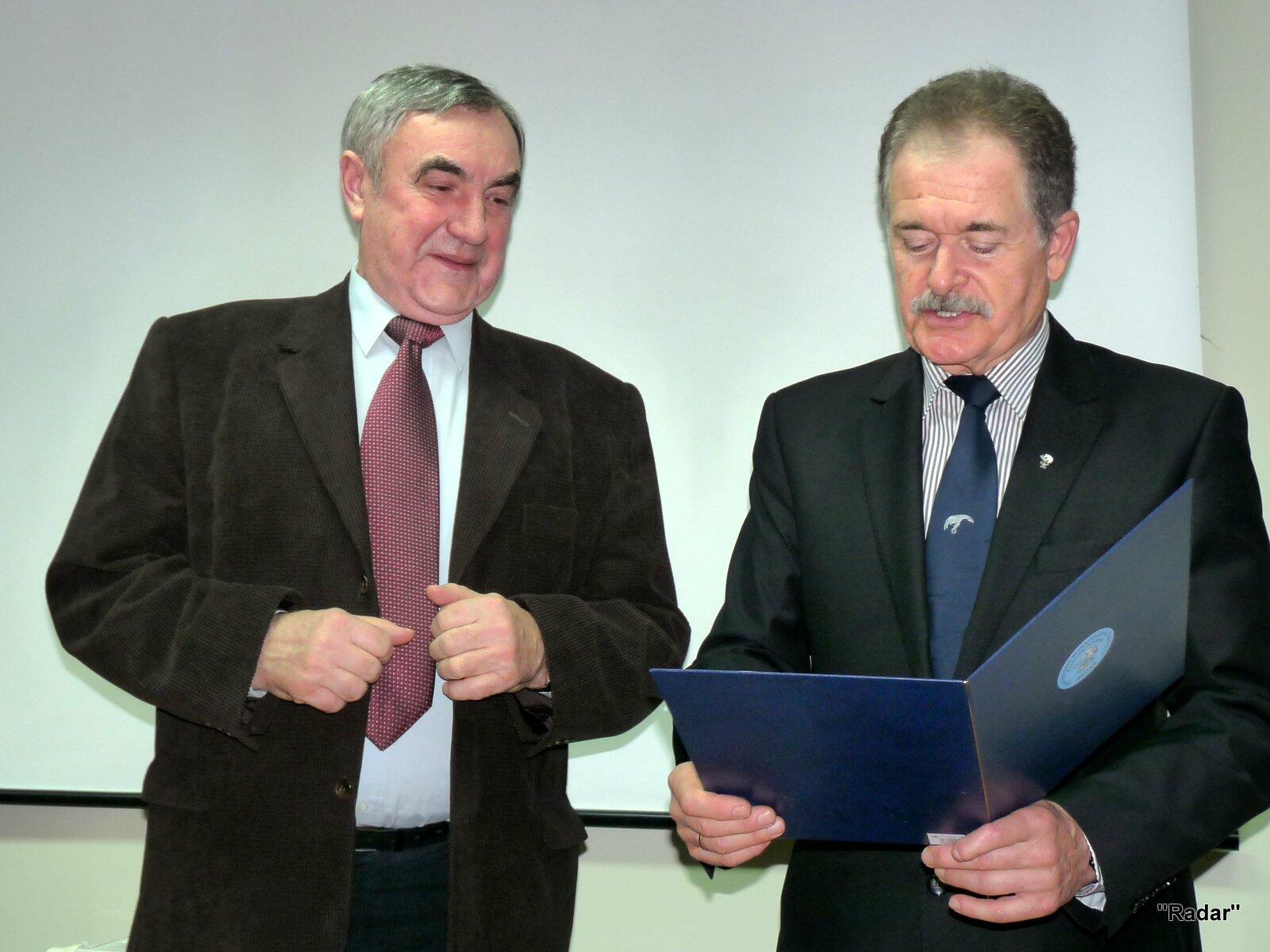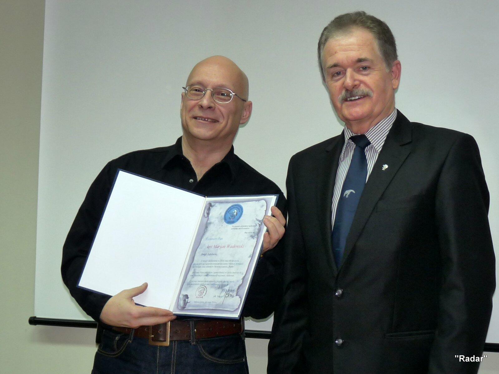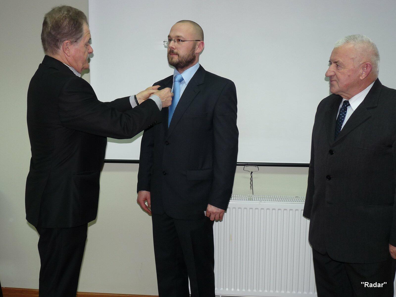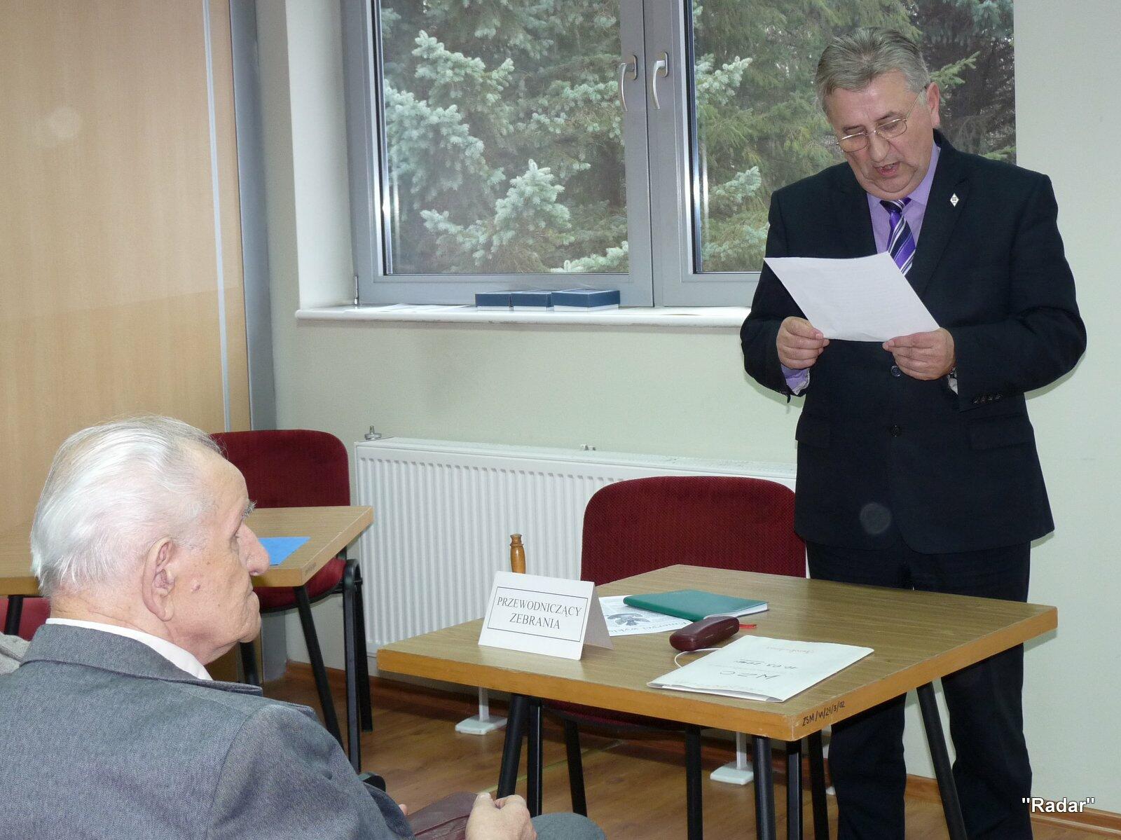 Przed rozpoczęciem zebrania nowy członek "Radaru" kpt.mar. rez. Paweł Strużyński otrzymał legitymację oraz znaczek JSŻR "Radar".