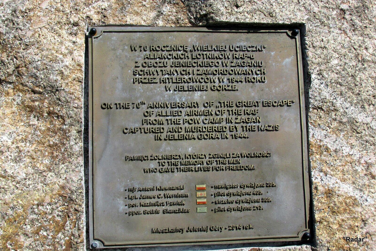 Obelisk oraz tablicę upamiętniającą wydarzenie sprzed 72 lat umieszczono na terenie lotniska Aerokubu Jeleniogórskiego (przy ul. Łomnickiej w Jeleniej Górze) w 2014 r.