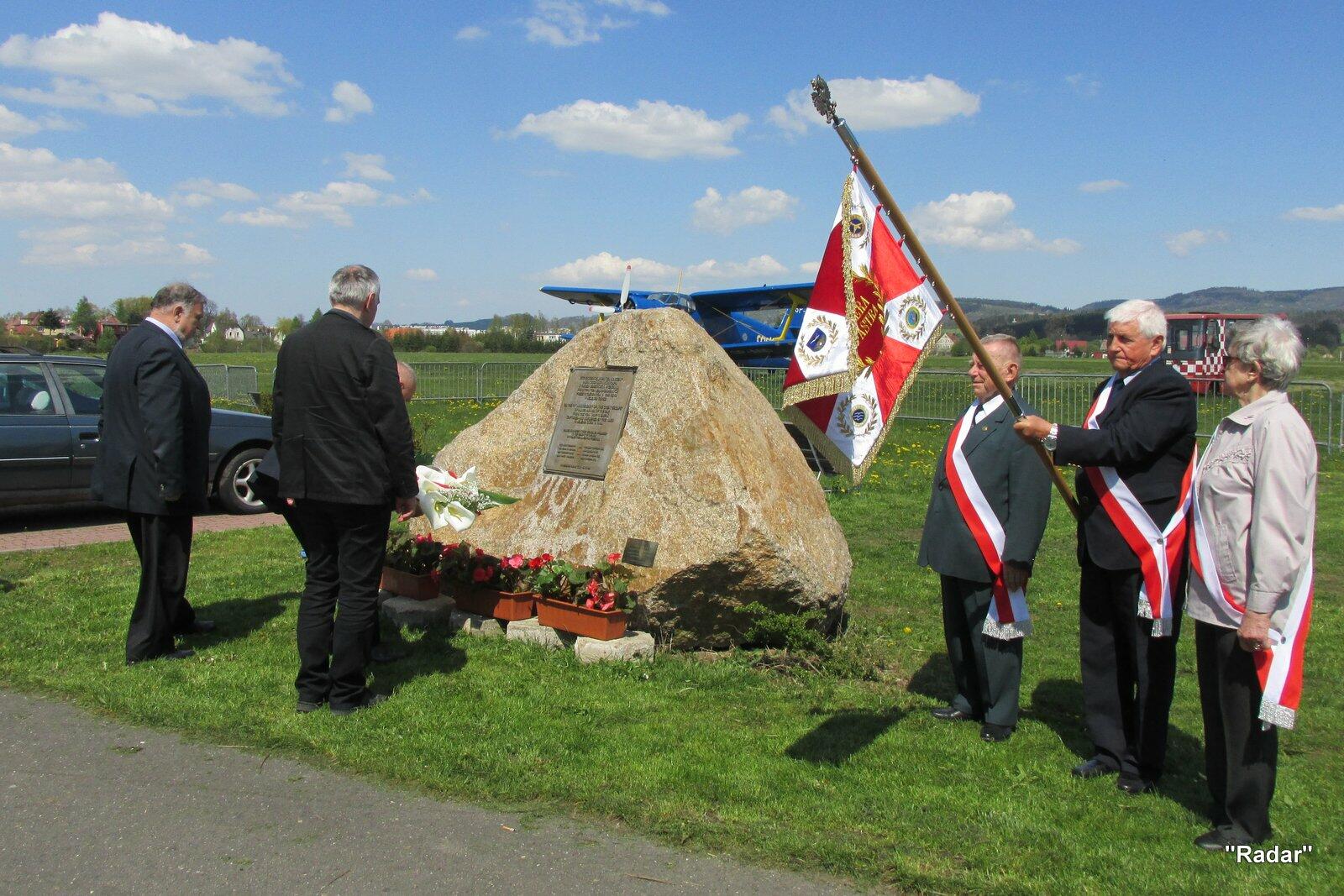 Natomiast wielki wysiłek organizacyjny w realizację umieszczenia obelisku na terenie lotniska Aeroklubu Jeleniogórskiego włożył Marek Gołębiowski - prezes JSŻR Radar jednocześnie prezes Jeleniogórskiego Klubu Seniorów Lotnictwa.