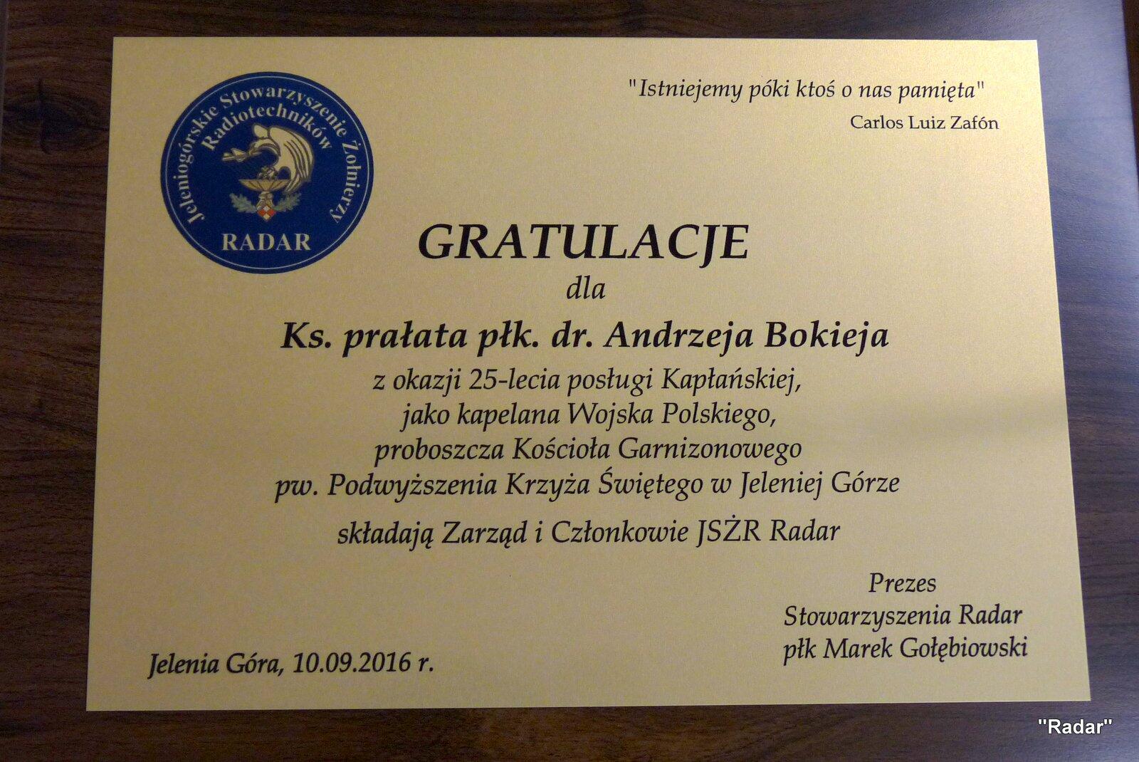 Po spotkaniu prezes Stowarzyszenia Radar podziękował za prelekcję i oprowadzenie po Książnicy i wręczył "radarową" publikację pt. „Rola wojska w rozwoju intelektualnym Jeleniej Góry”.