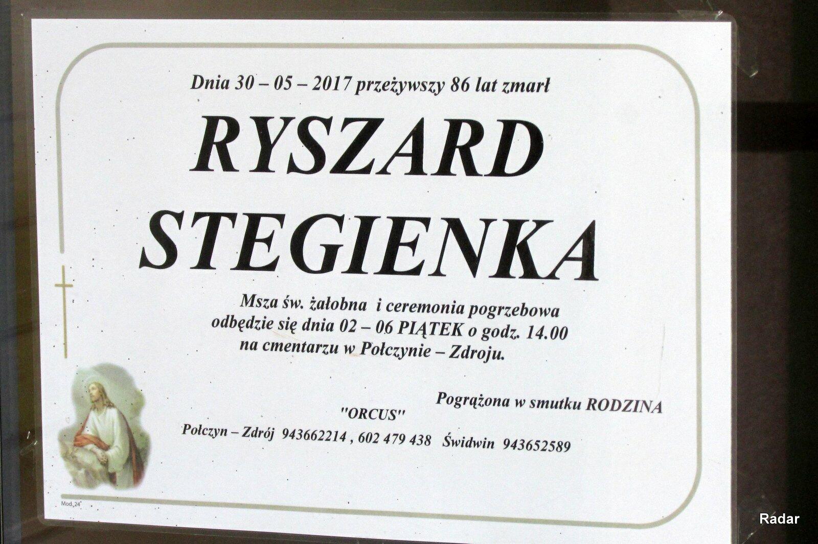30 maja 2017 r. zmarł mjr w st.spocz. Ryszard Stegienka.