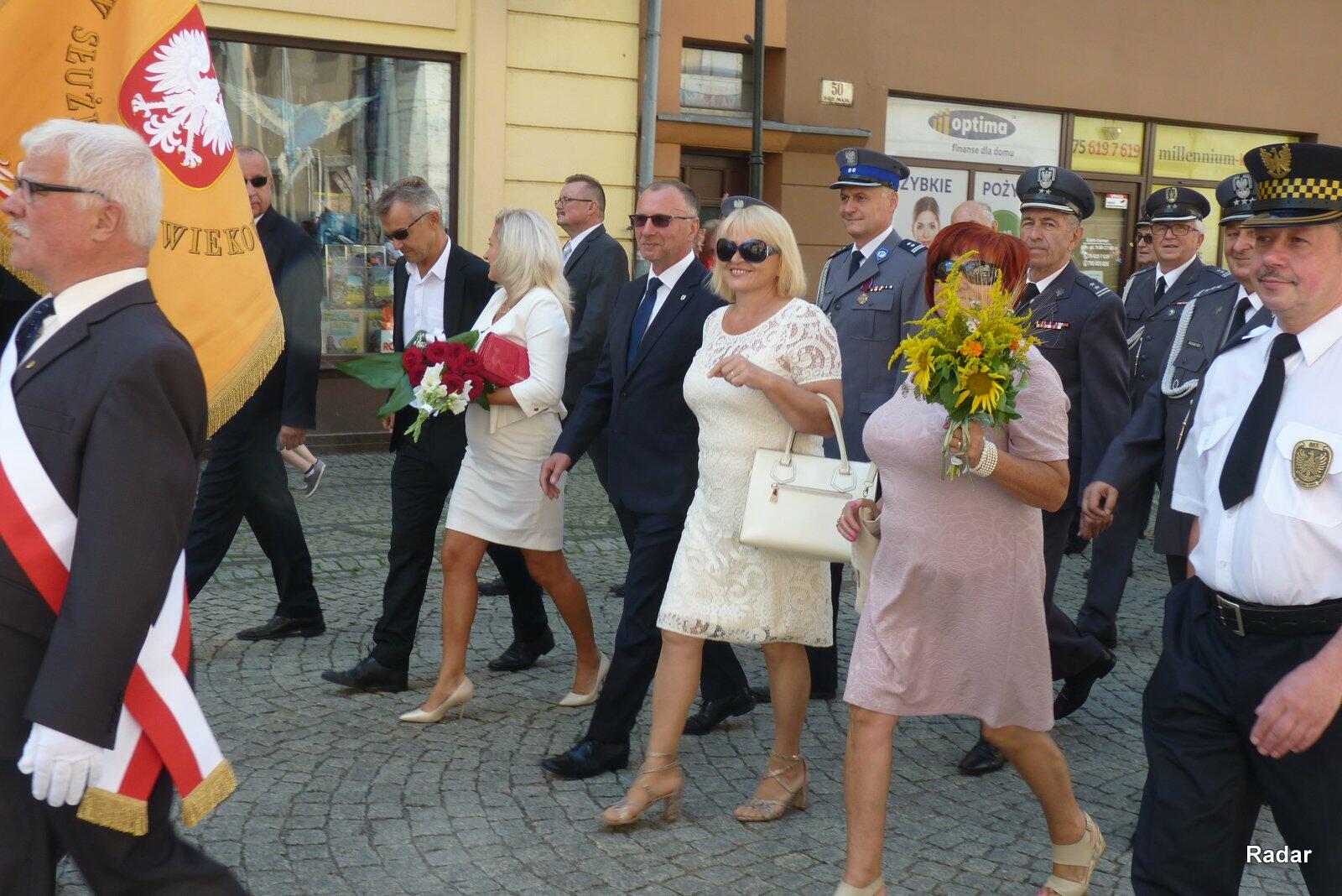 Uroczystości rozpoczęły się przemarszem uczestników, przy dźwiękach Orkiestry Dętej przy Filharmonii Dolnośląskiej, ulicą 1 Maja spod Bramy Wojanowskiej na plac przy kościele garnizonowym.