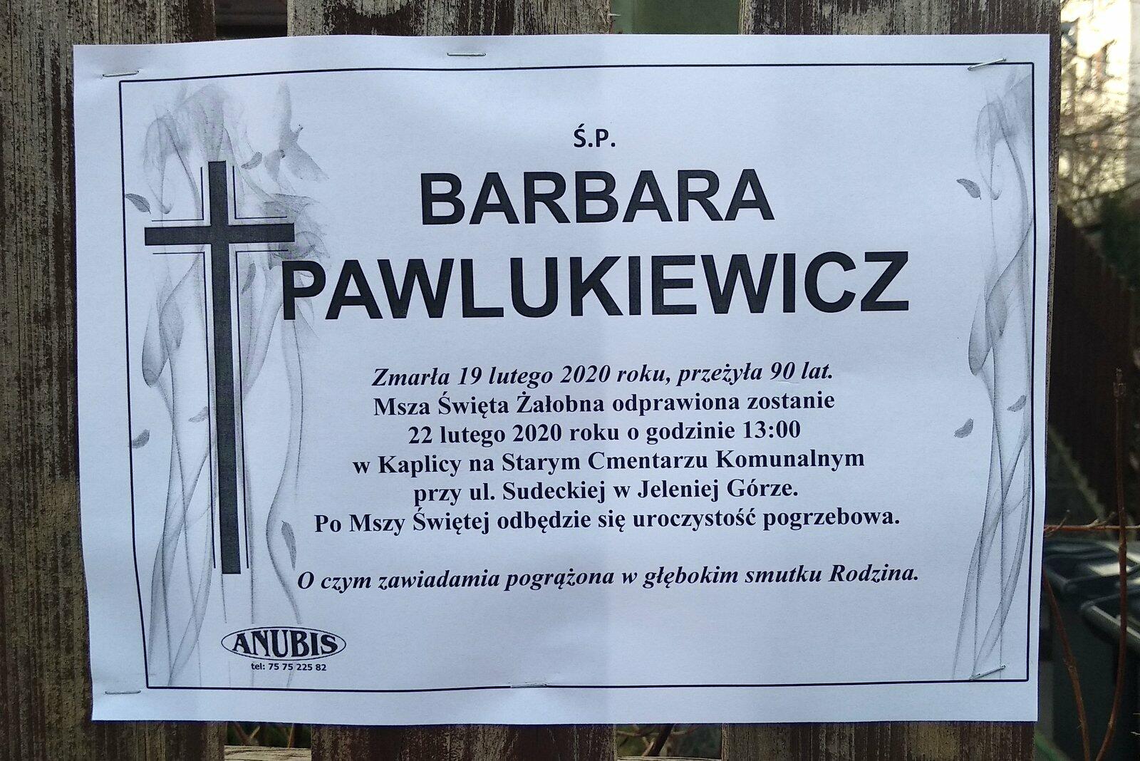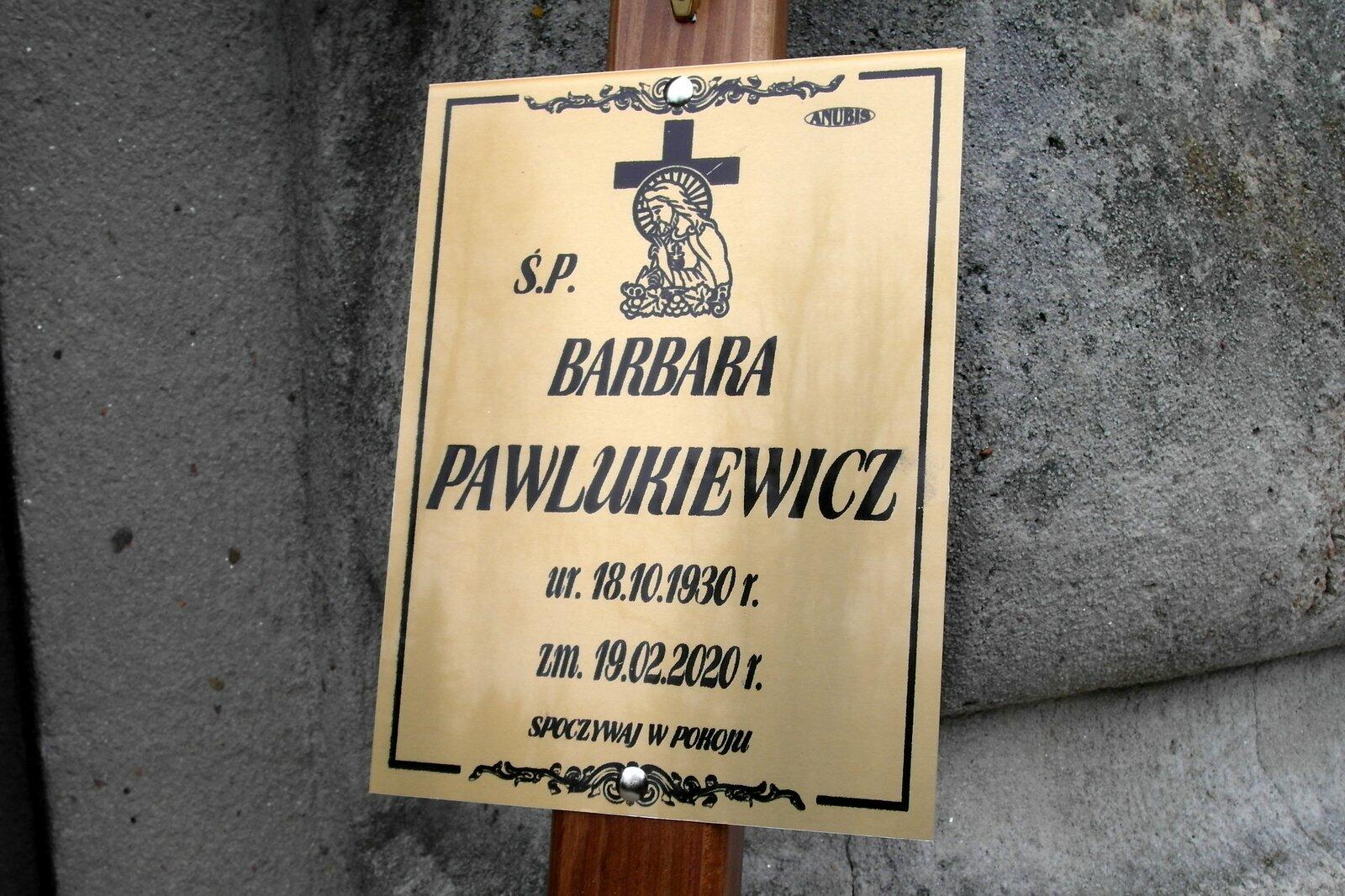 19 lutego 2020 r. zmarła w wieku 90 lat śp. Barbara Pawlukiewicz.