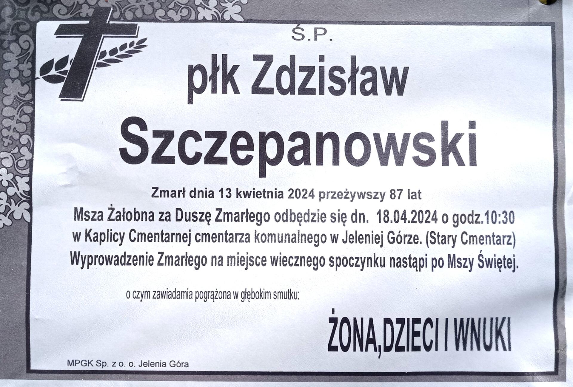 płk w st. spocz. Zdzisław SZCZEPANOWSKI