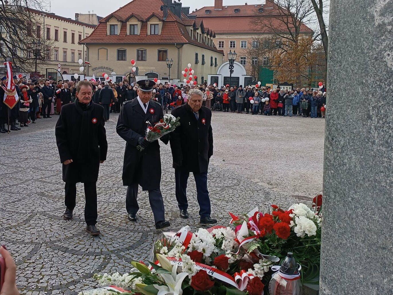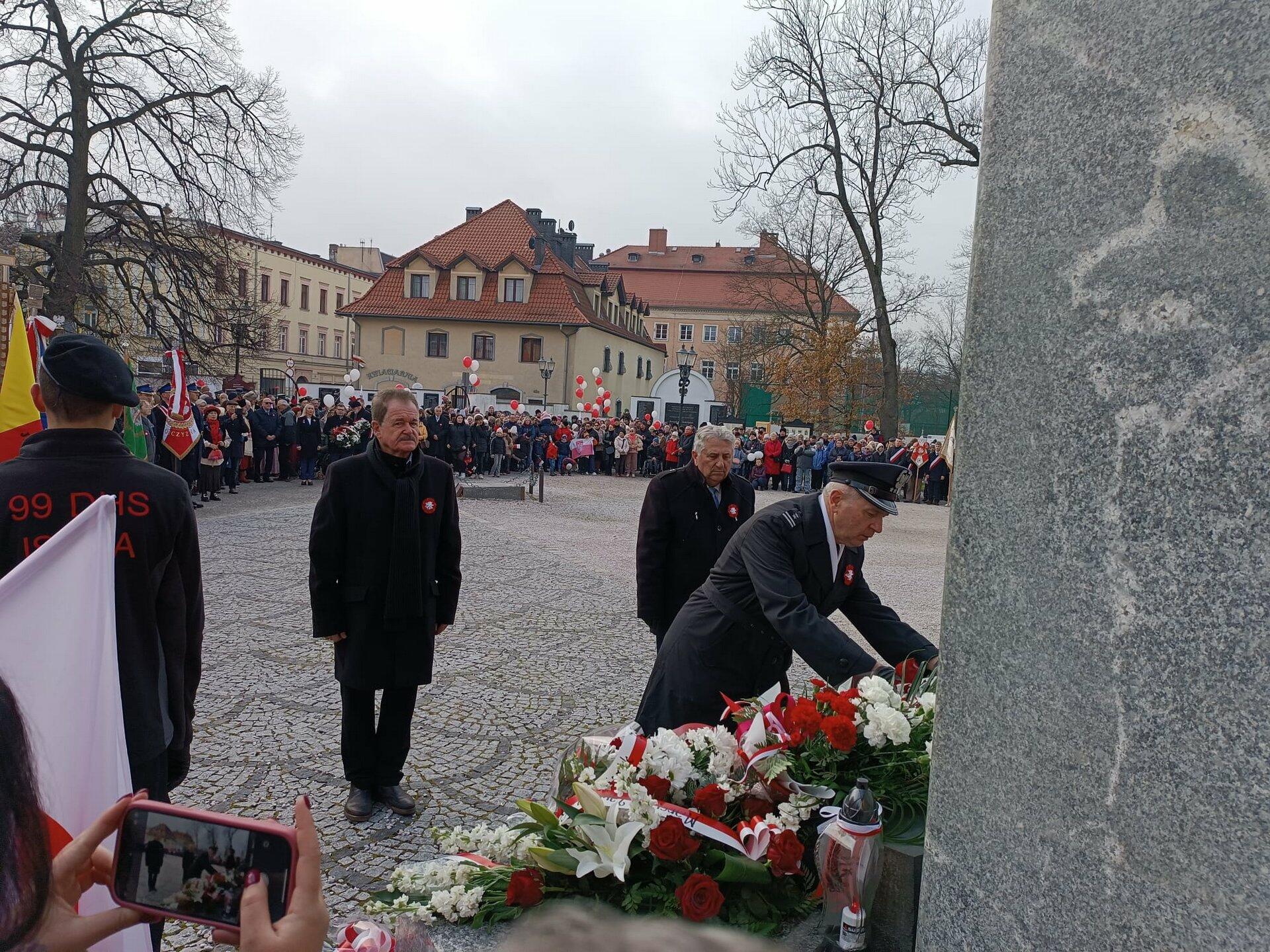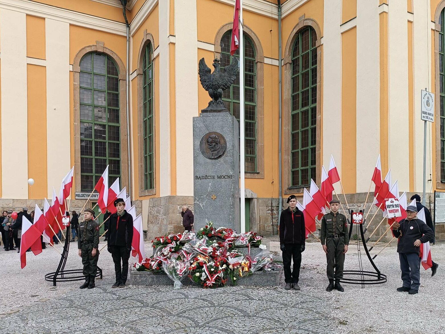 Podczas uroczystości złożono kwiaty pod jeleniogórskim pomnikiem "Niepodległość i Wolność".